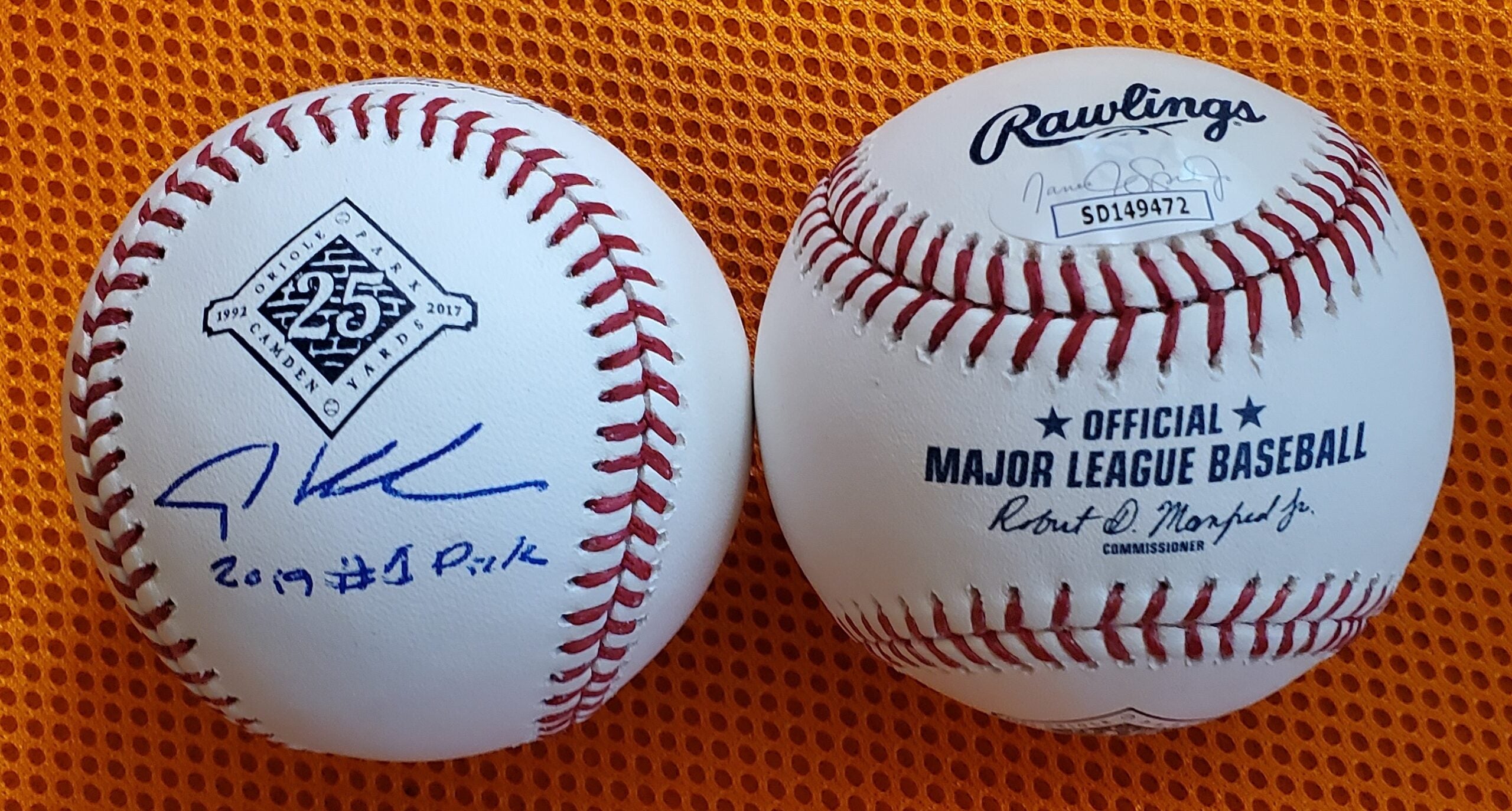 Adley Rutschman Autographed Camden Yards Commemorative Baseball Inscribed 2019 #1 Pick.