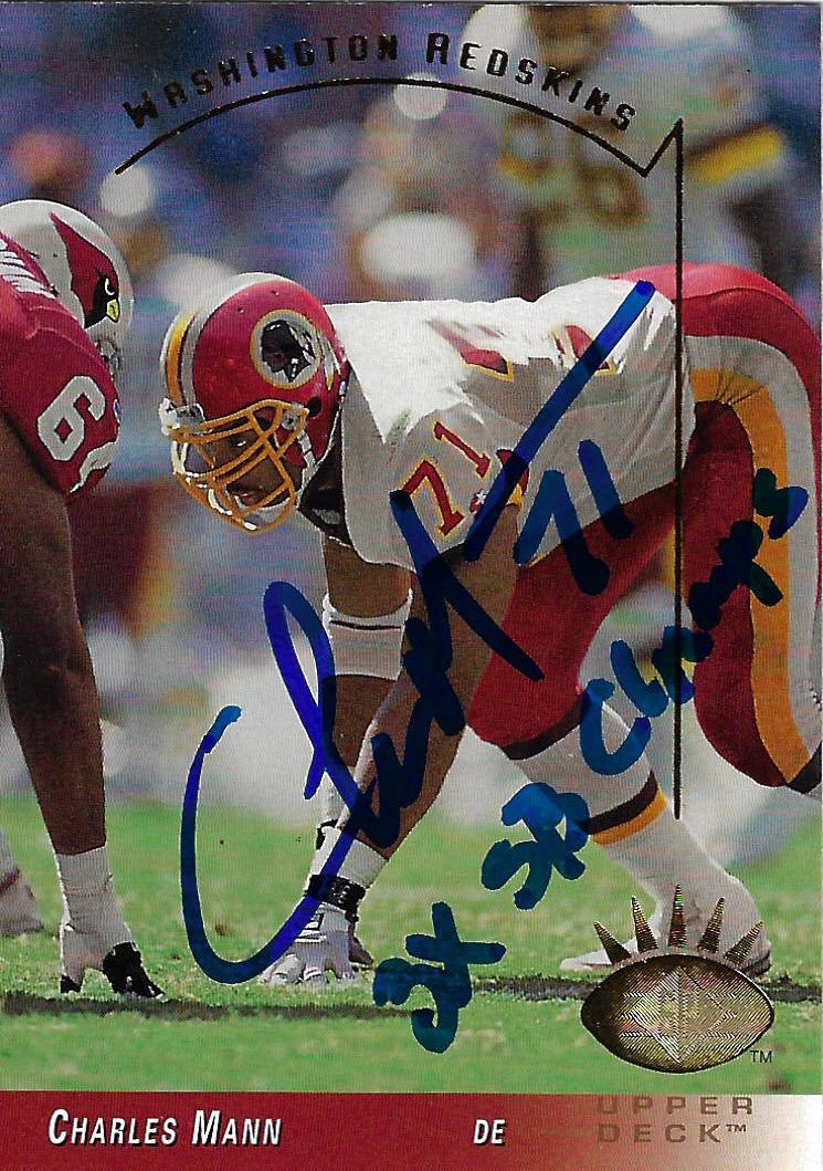 Charles Mann Autographed 1993 SP Football Card Inscribed 3X SB Champs Charles Mann Autograph Signing 3
