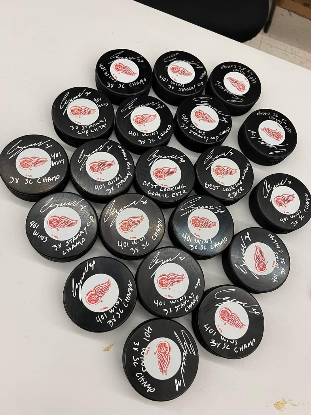 Chris Osgood Autographed Detroit Red Wings Puck Inscribed 3x Stanley Cup Champ JSA COA