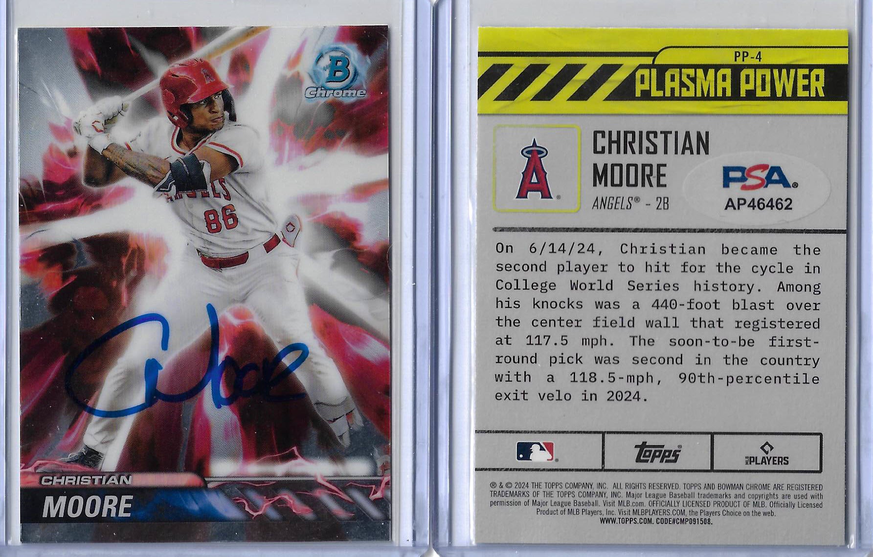 Christian Moore Autographed 2024 Bowman Chrome PLASMA POWER PP4 RC with PSA Certificate Of Authenticity