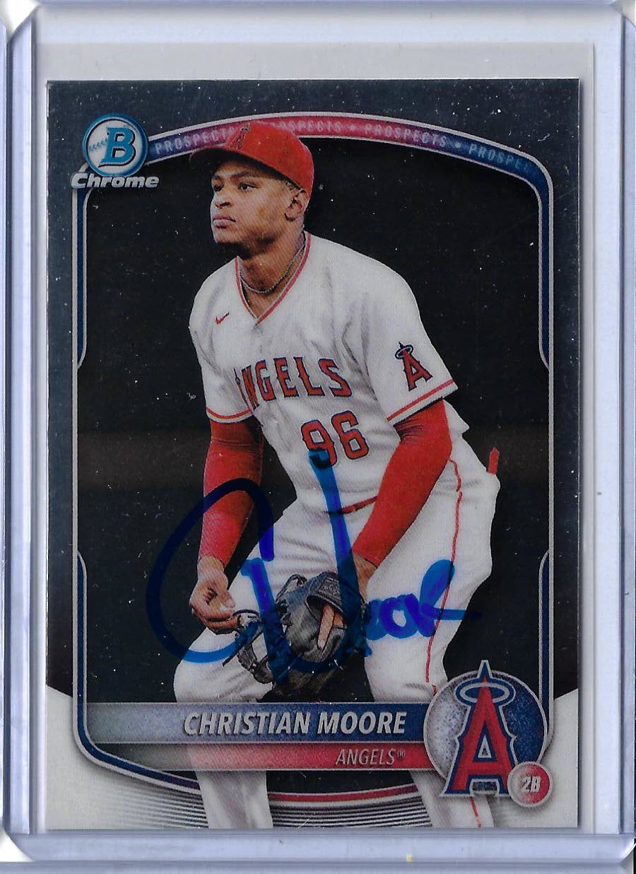 Christian Moore Autographed 2025 Bowman Chrome BCP107 Rookie Card