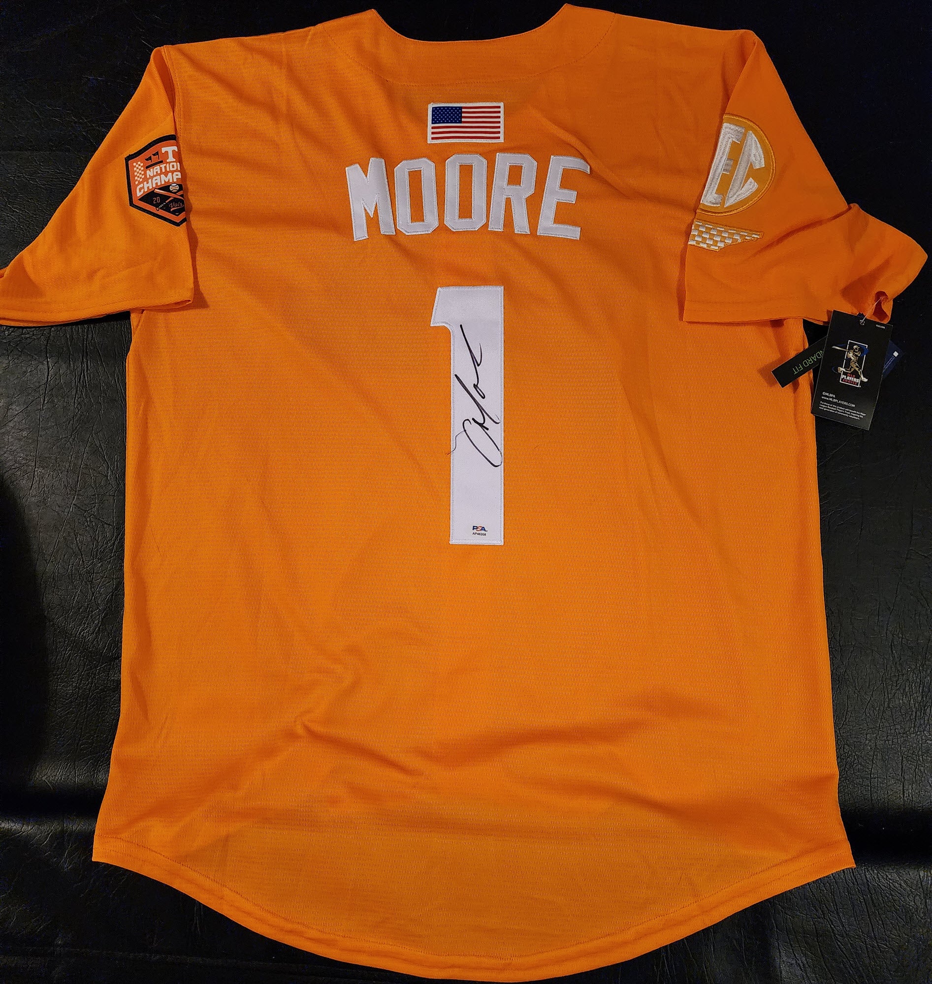Christian Moore Autographed Orange Tennessee Volunteers 2024 Mens College World Series Jersey with PSA Certificate Of Authenticity
