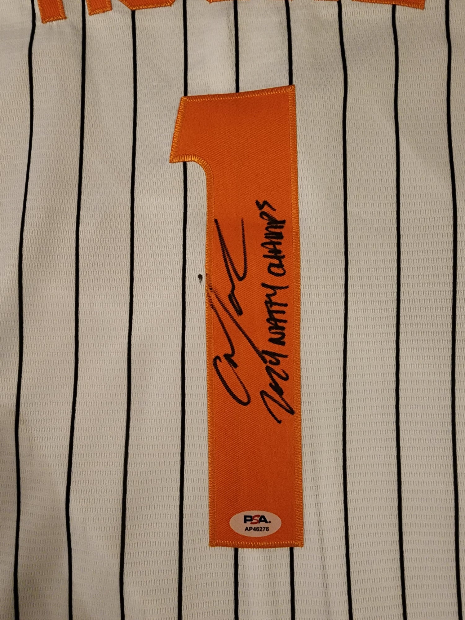 Christian Moore Autographed Orange Tennessee Volunteers 2024 Mens College World Series Jersey Inscribed 2024 Natty Champs with PSA Certificate Of Authenticity