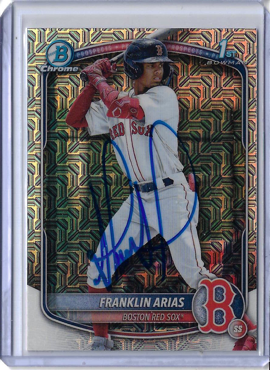 What makes Arias especially appealing to collectors is how fast his stock is rising. In just two seasons, he’s gone from international signee to being ranked a Top-10 overall MLB prospect by several outlets, earning praise for his bat-to-ball skills, defensive polish, and exciting upside. That rapid climb means the window to pick up his autograph at affordable prices could be closing fast. From signed rookie cards to baseballs, anything with Arias’s name on it could become centerpiece material in a collection once he makes his big-league debut in Boston. For autograph collectors, Franklin Arias isn’t just another prospect — he’s an investment in the Red Sox’s future.