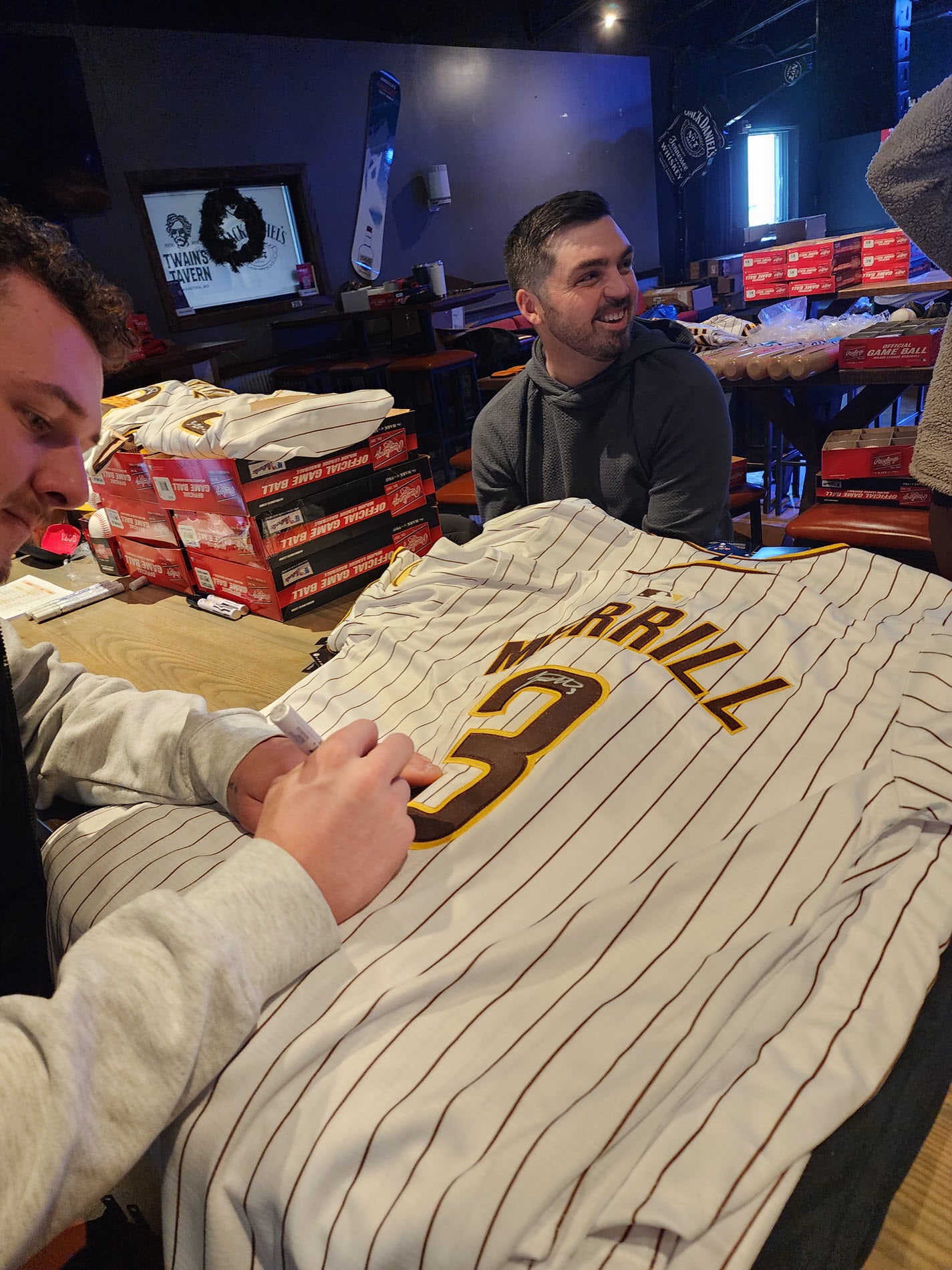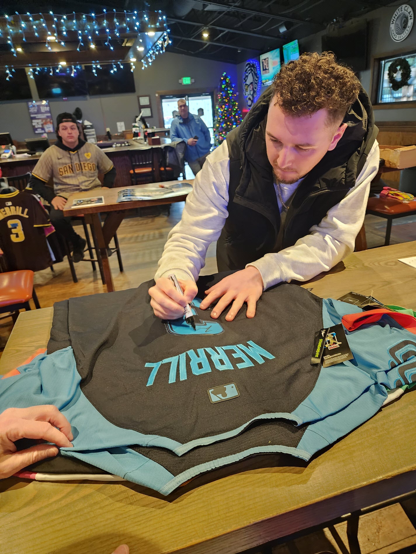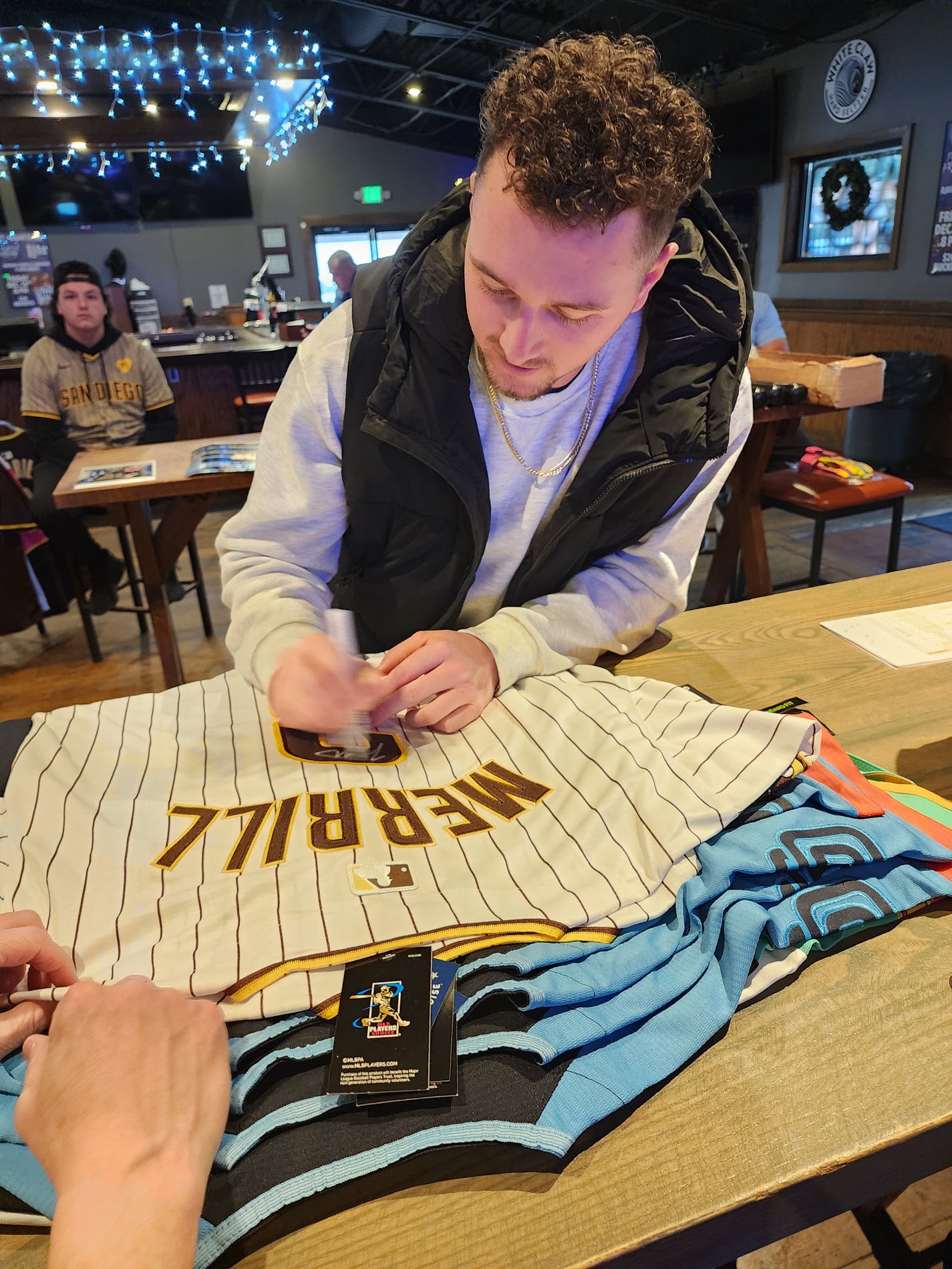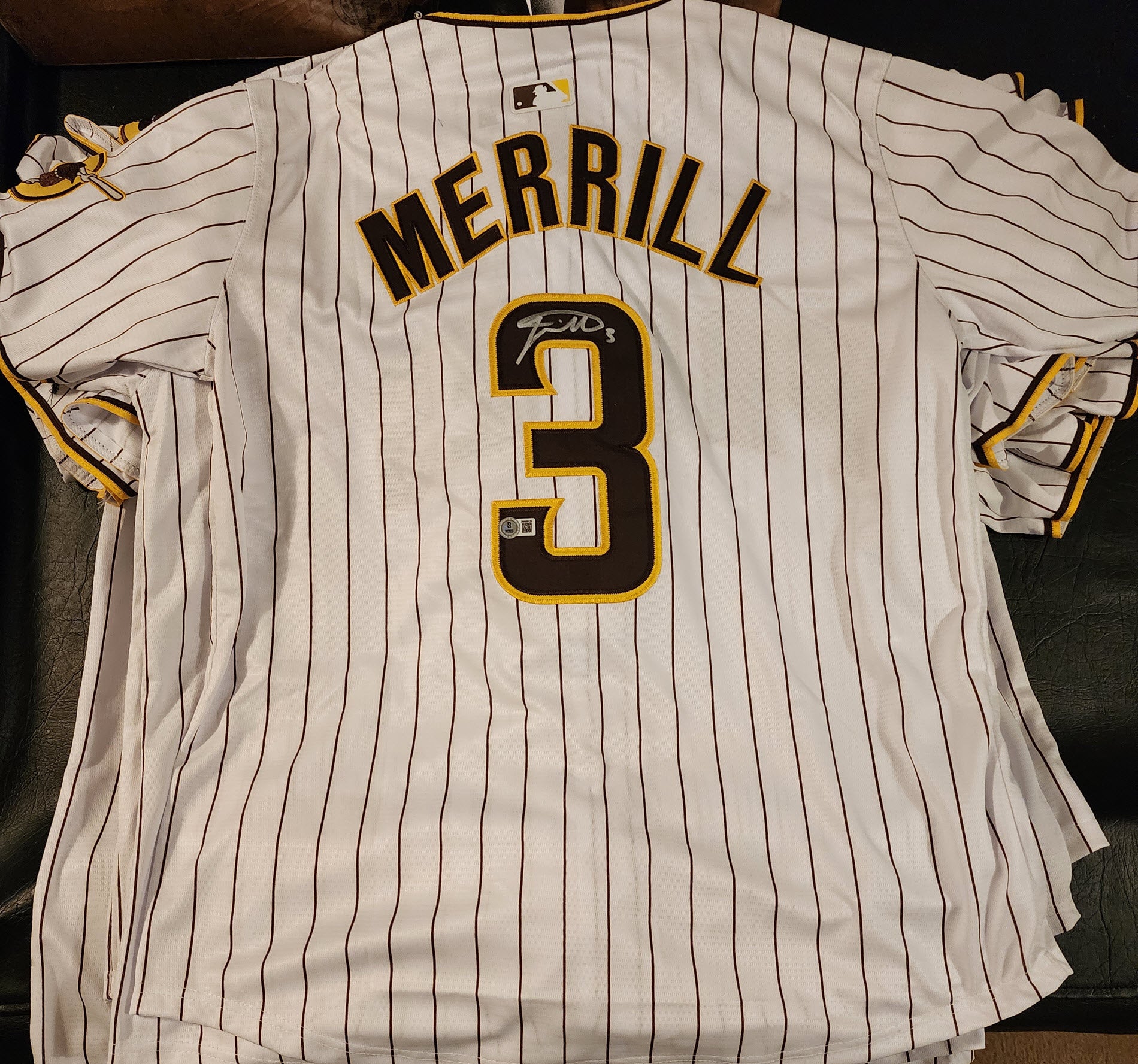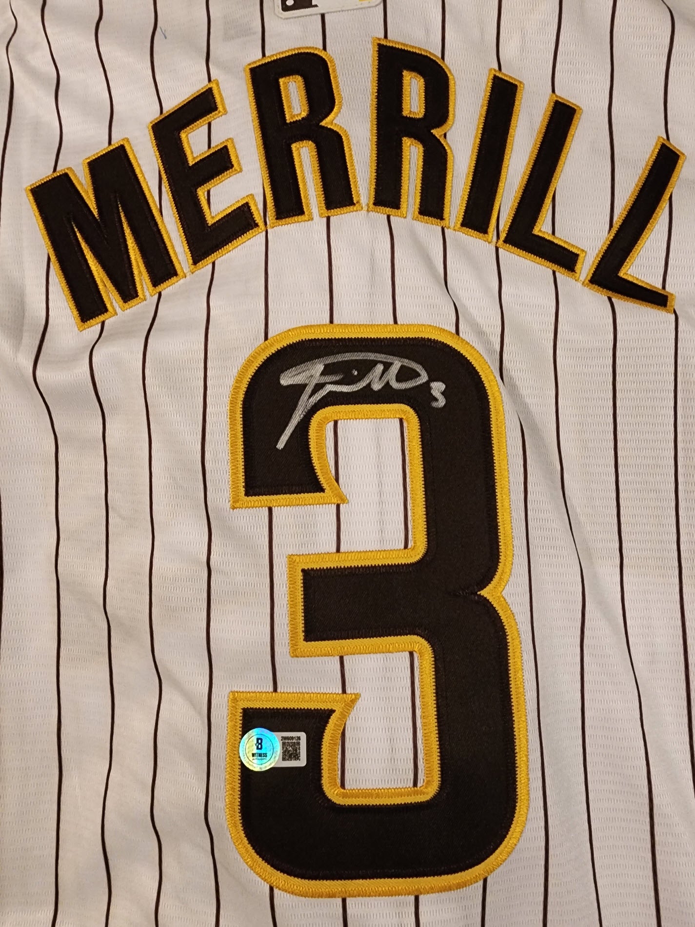 Jackson Merrill Autographed Padres Home Jersey with Beckett Witnessed Certificate of Authenticity.