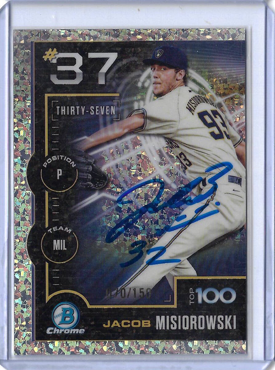 Jacob Misiorowski Autographed 2025 Bowman Top100 MINI DIAMOND REFRACTOR BTP-37 #/150 Rookie Card RC