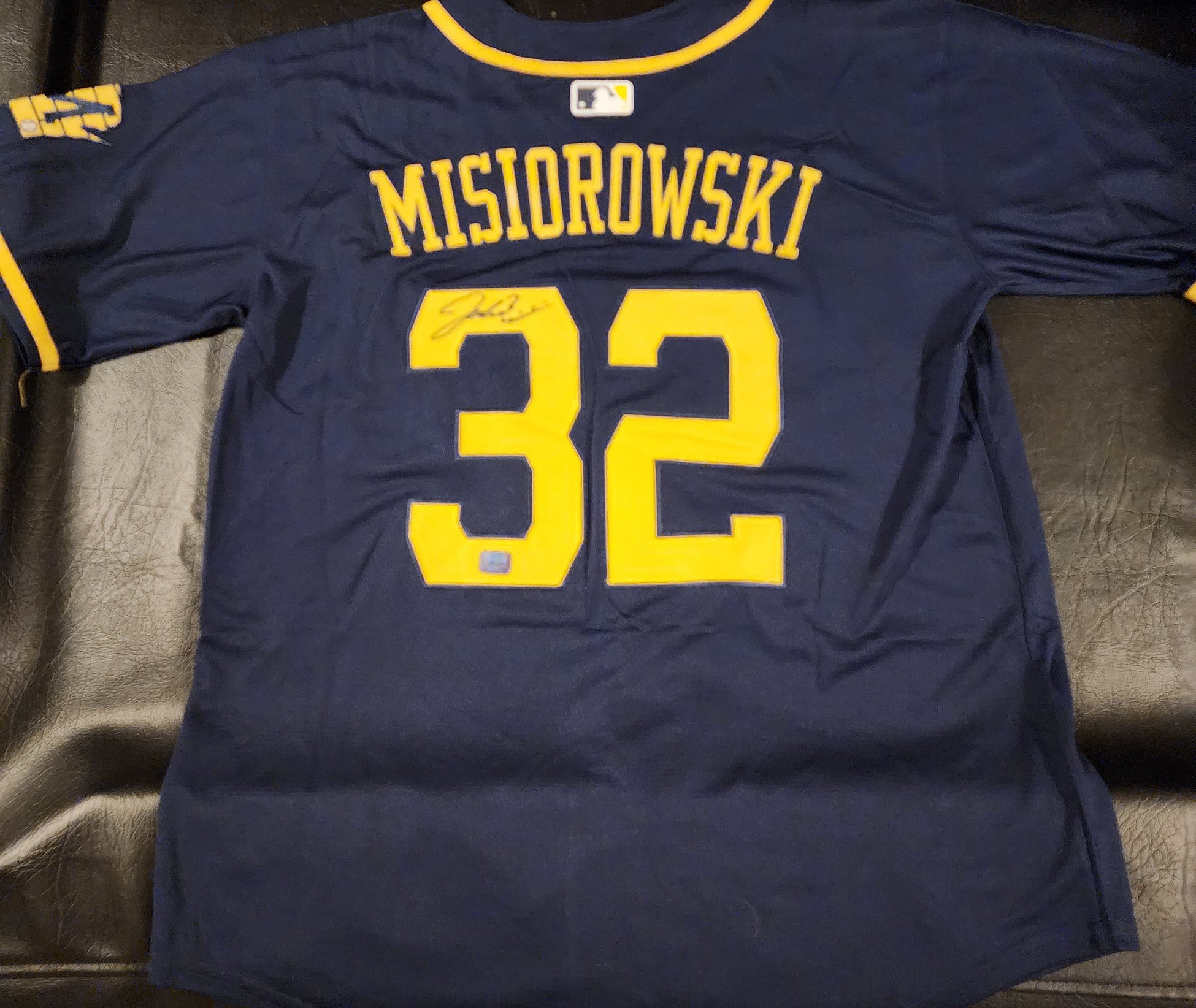 Jacob Misiorowski Autographed Milwaukee Navy Replica Jersey with PROVA Witnessed Certificate of Authenticity.