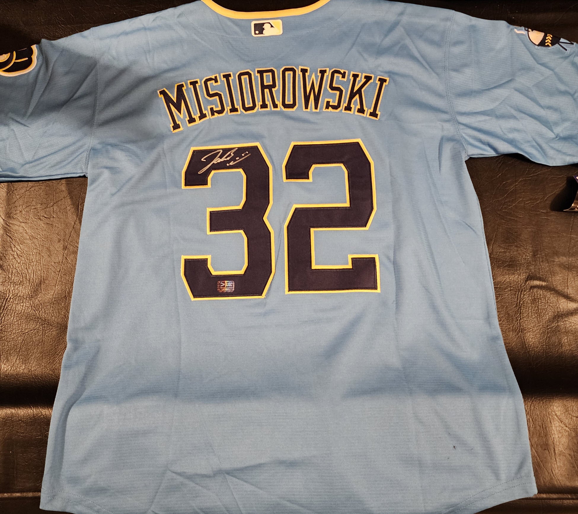 Jacob Misiorowski Autographed Milwaukee Powder Blue Replica Jersey with PROVA Witnessed Certificate of Authenticity.