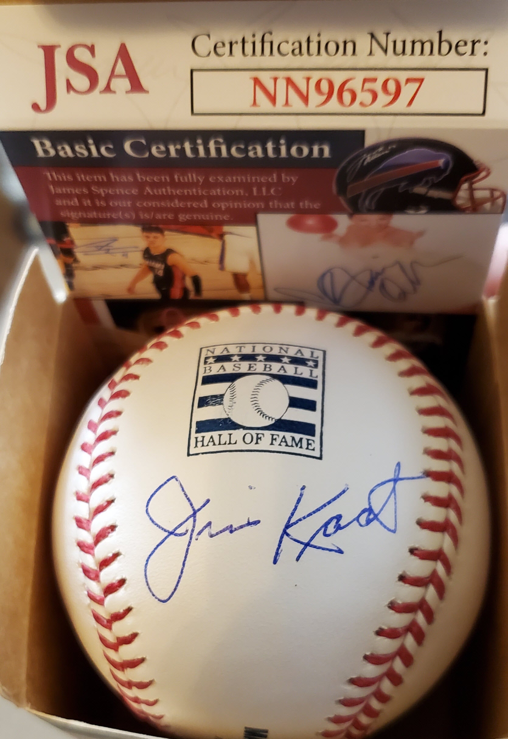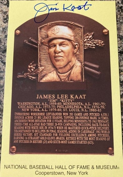 You are purchasing a Jim Kaat Autographed Baseball Hall of Fame Plaque Postcard Beckett Witnessed COA.