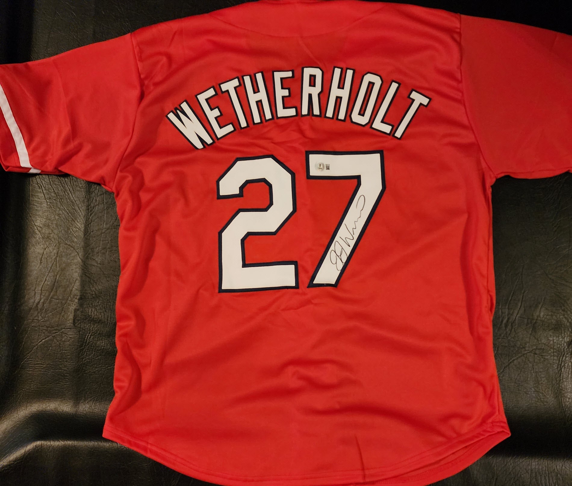 JJ Wetherholt Autographed Red Custom The Lou Jersey with Beckett Certificate of Authenticity.