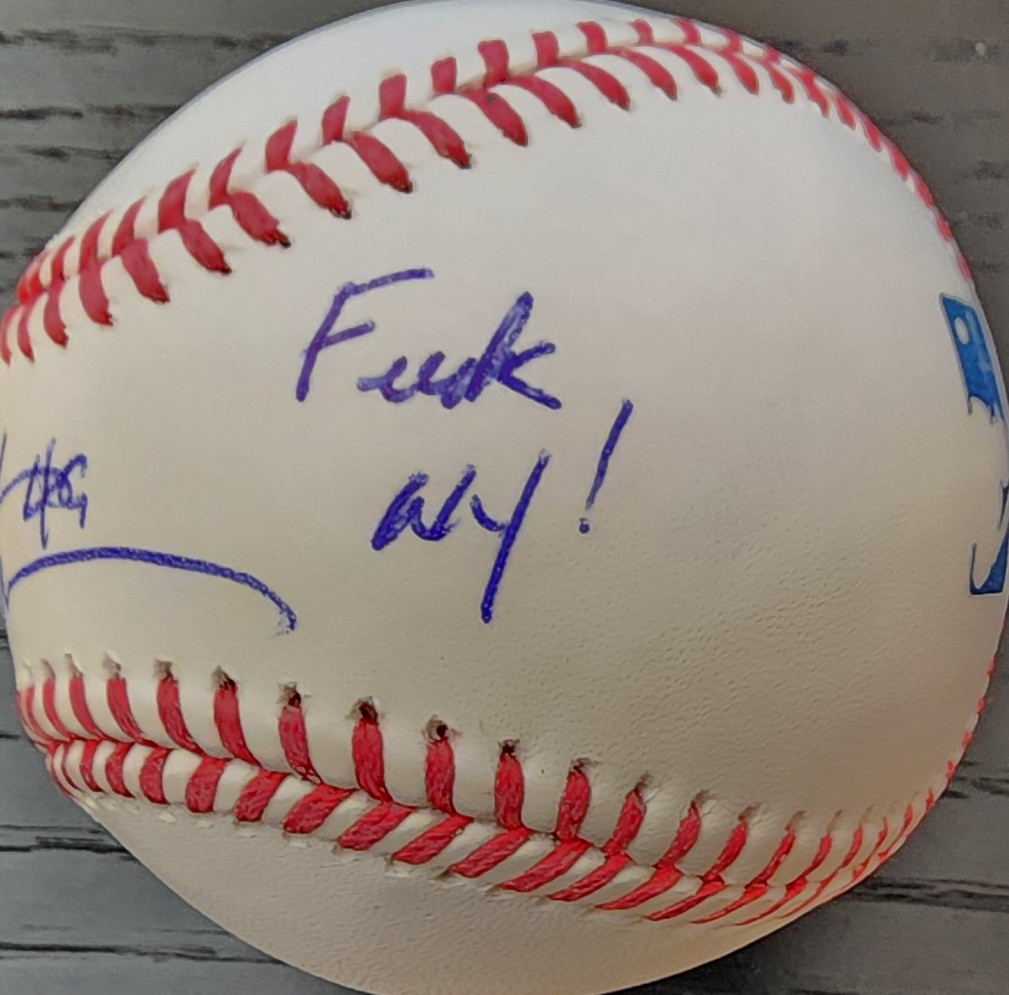 John Rocker Autographed OMLB Baseball Inscribed Fuck NY