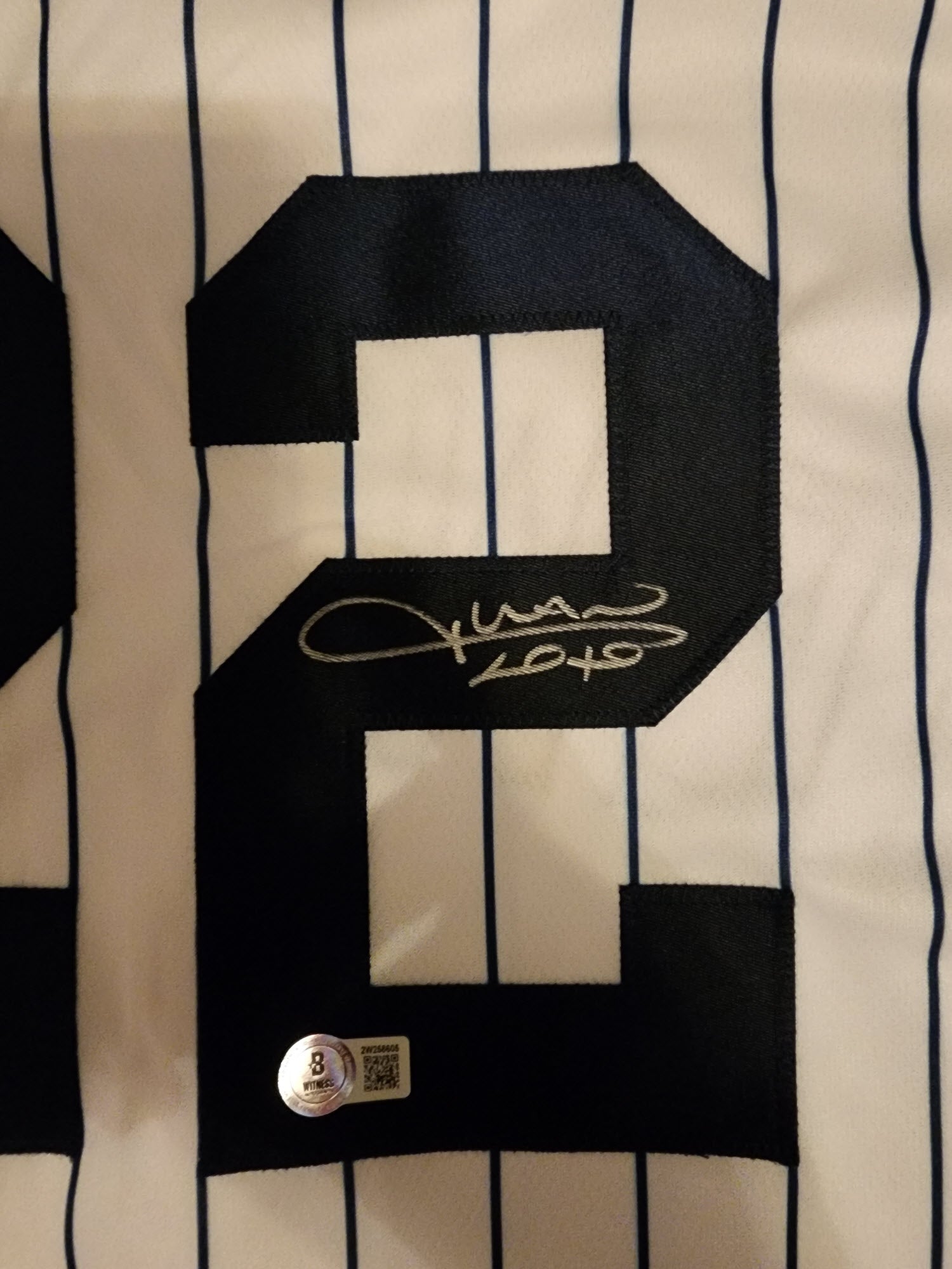 Juan Soto Signed/Autographed Custom New York Yankees Pin Stripe Baseball Jersey. This jersey is authenticated by Beckett Witnessed Certificate Of Authenticity and includes their Tamper-proof Hologram Sticker. Jersey size is XL.