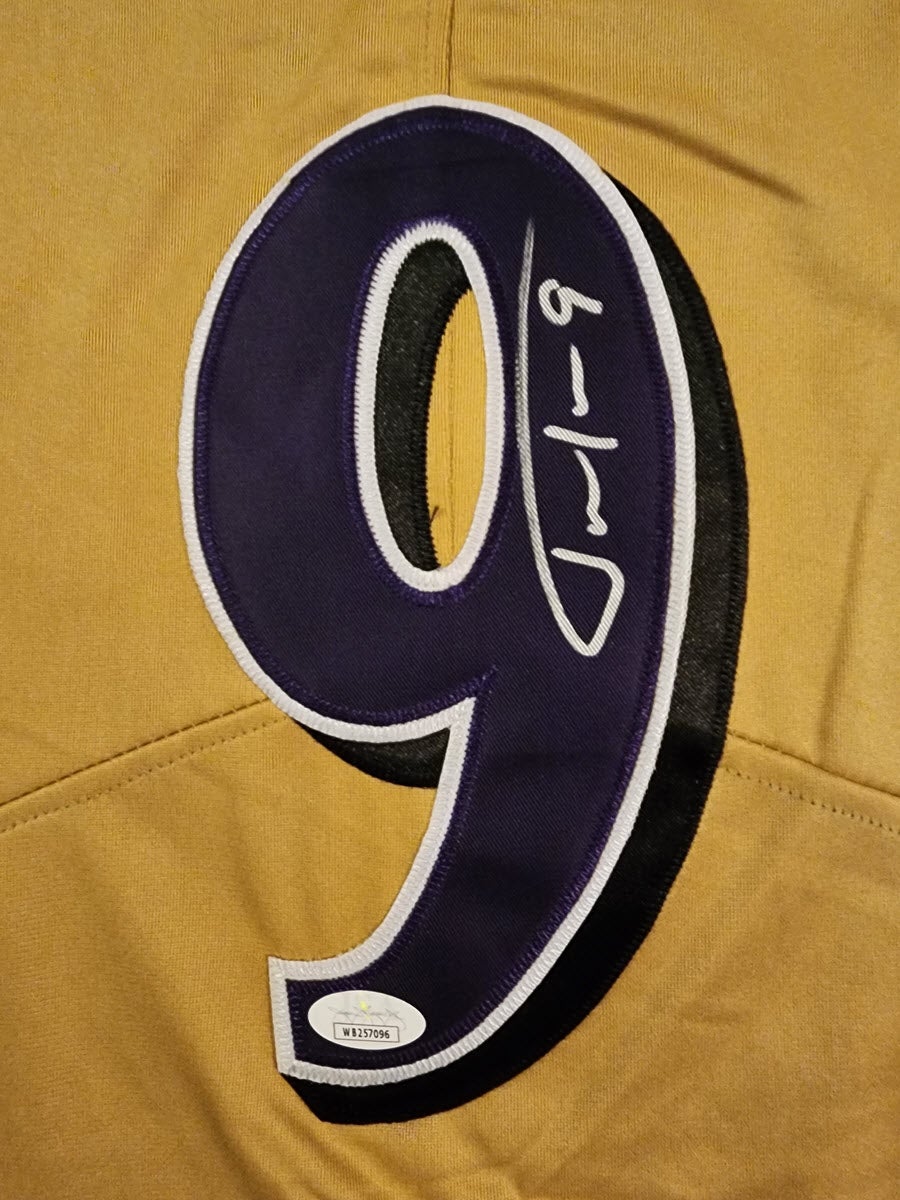 Justin Tucker Autographed Gold 2020 Team Big Logo Legend Baltimore Ravens Jersey JSA COA