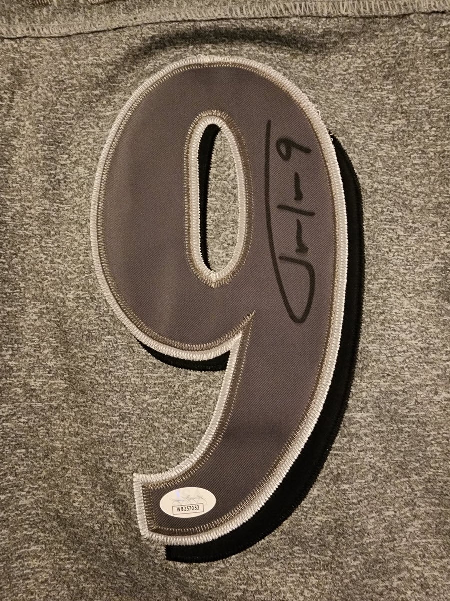 Justin signed this beautiful jersey at our private signing with him in March 2024. All Jerseys come with JSA Witnessed Sticker and Matching COA Card.