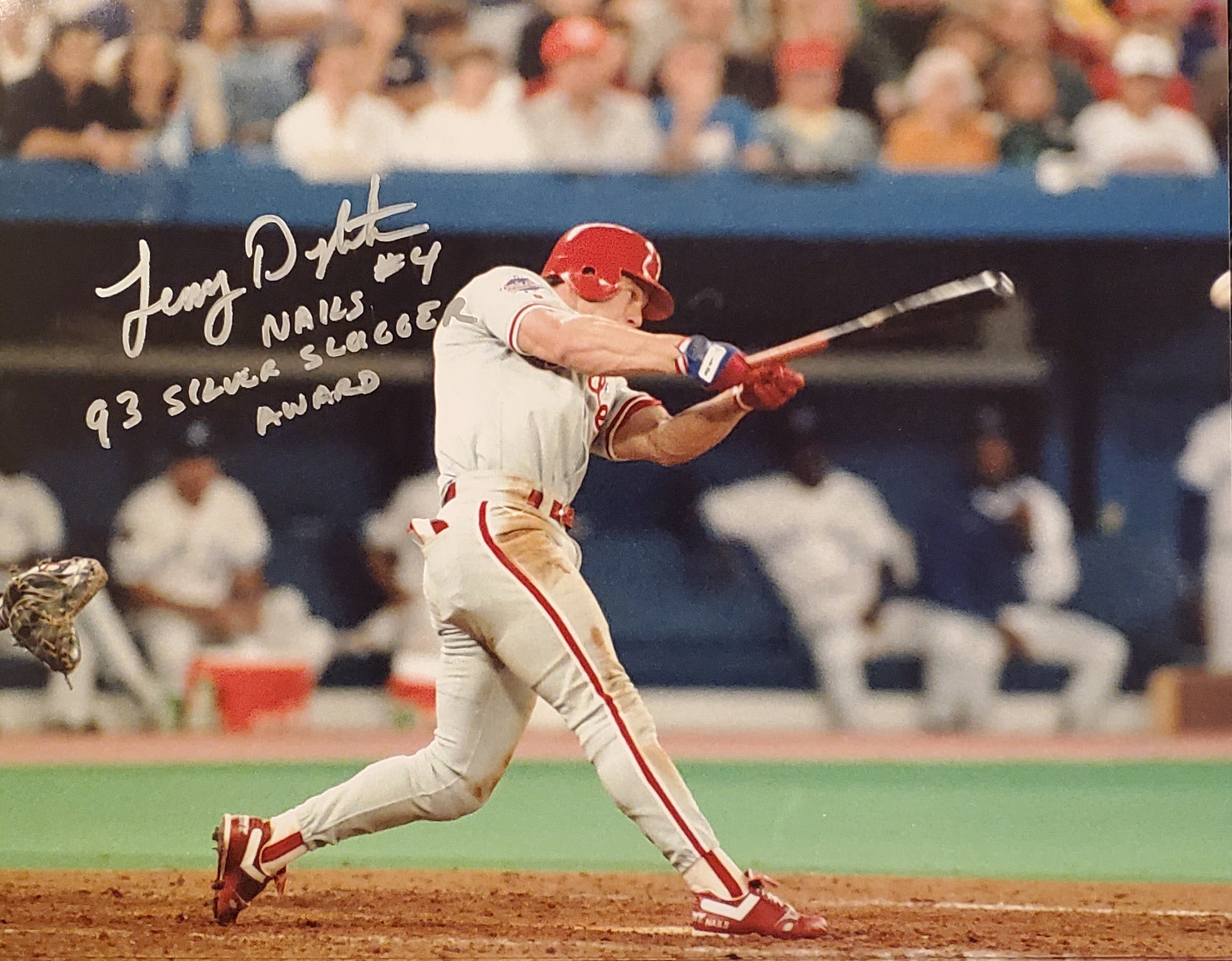 Lenny Dykstra Autographed 11×14 Photo Inscribed 1993 Silver Slugger Award SILVER