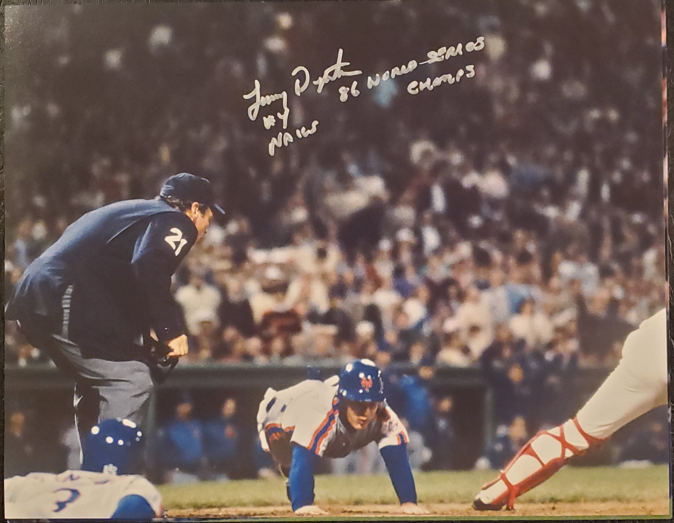 Lenny Dykstra Autographed 11×14 Photo Inscribed 86 World Series Champs SILVER