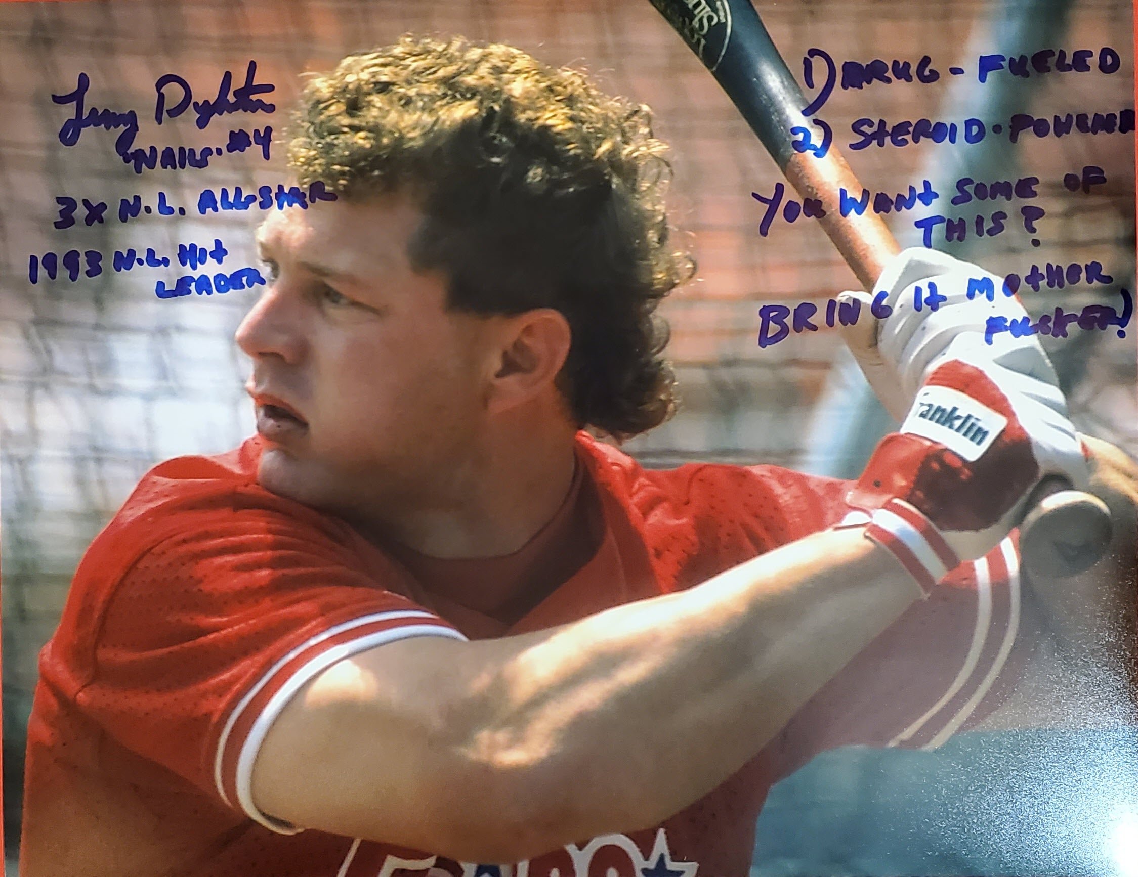 Lenny Dykstra Autographed 11×14 Photo Inscribed Stats Drugs Steroids Bring It Mother Fucker