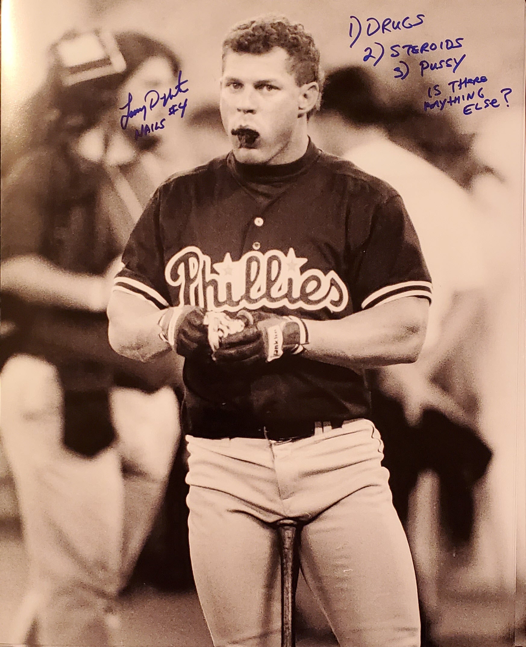 Lenny Dykstra Autographed 16×20 Photo Inscribed Drugs Steroids Pussy Anything Else