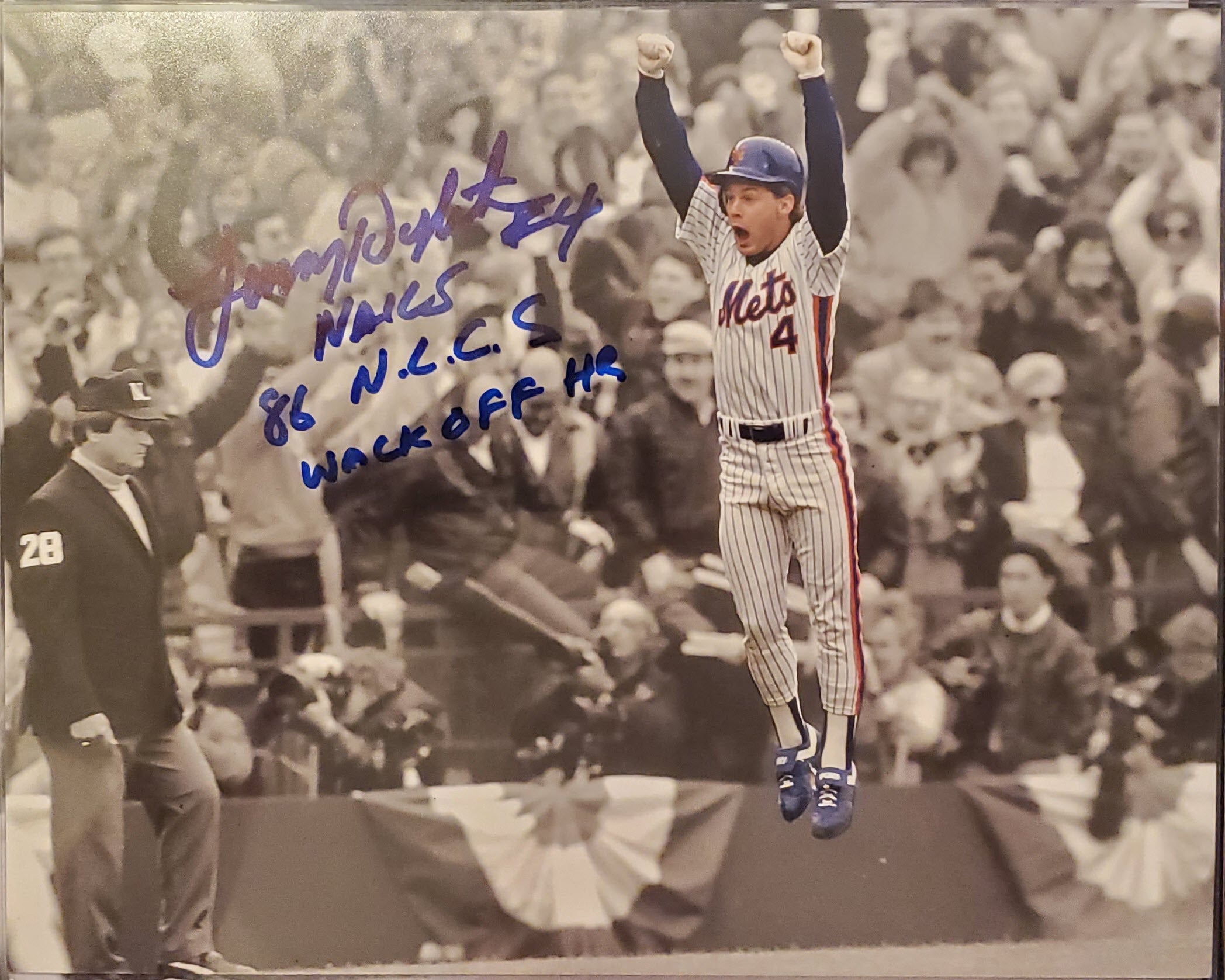 Lenny Dykstra Autographed 8×10 Photo Inscribed 86 NLCS Walk Off BW