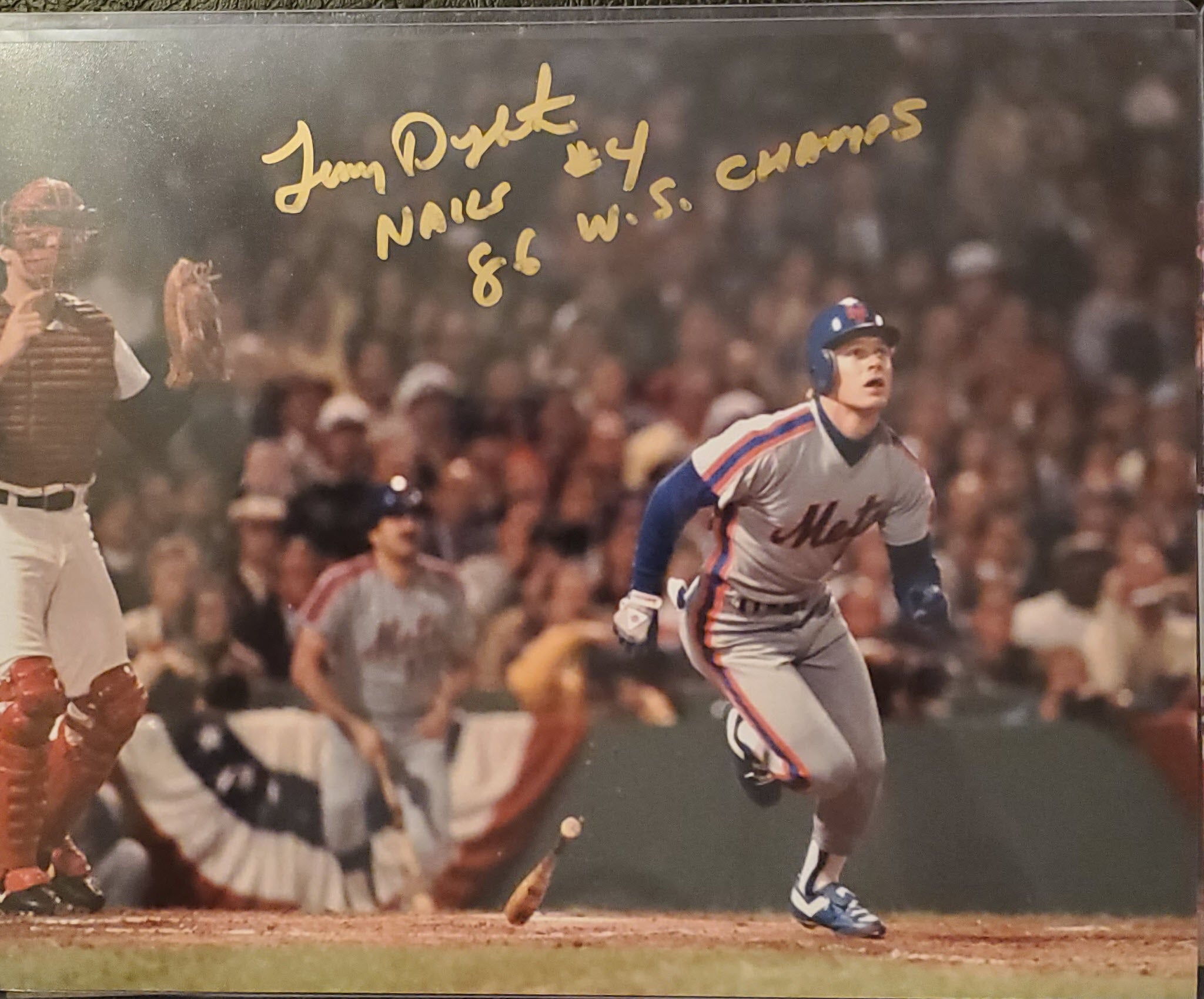 Lenny Dykstra Autographed 8×10 Photo Inscribed 86 WS Champs GOLD