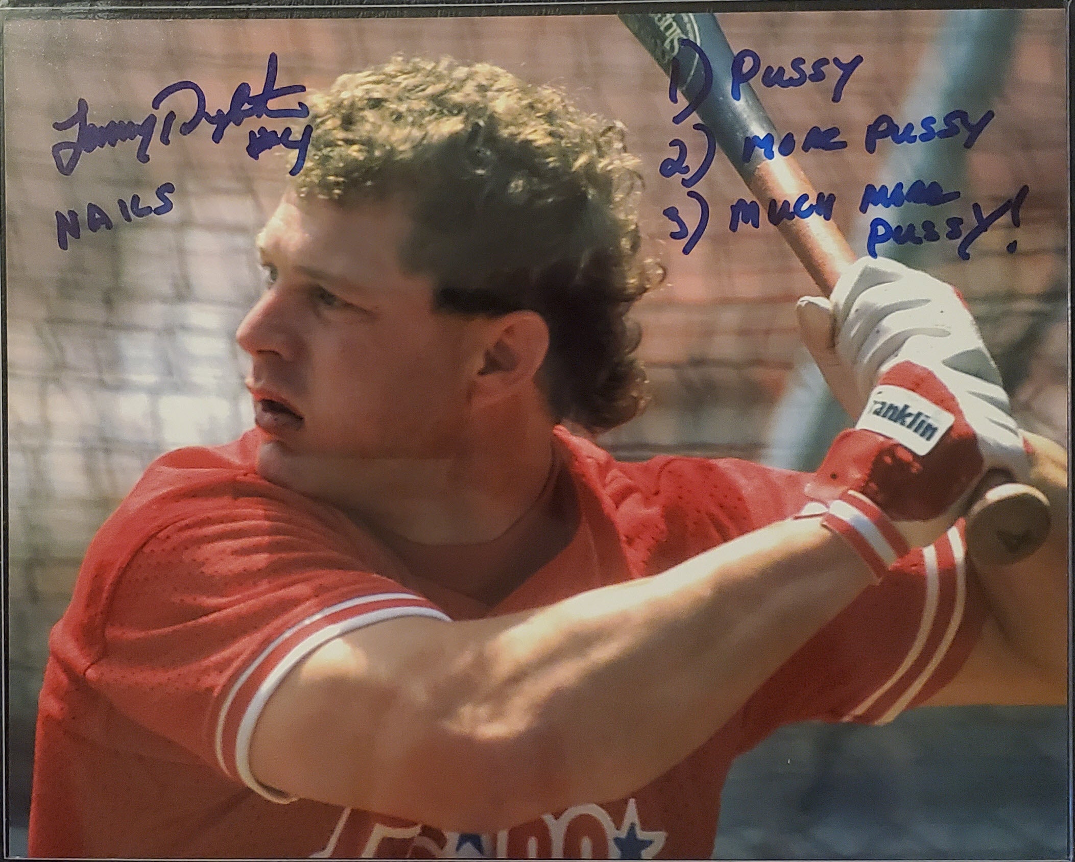 Lenny Dykstra Autographed 8×10 Photo Inscribed Pussy More Much More