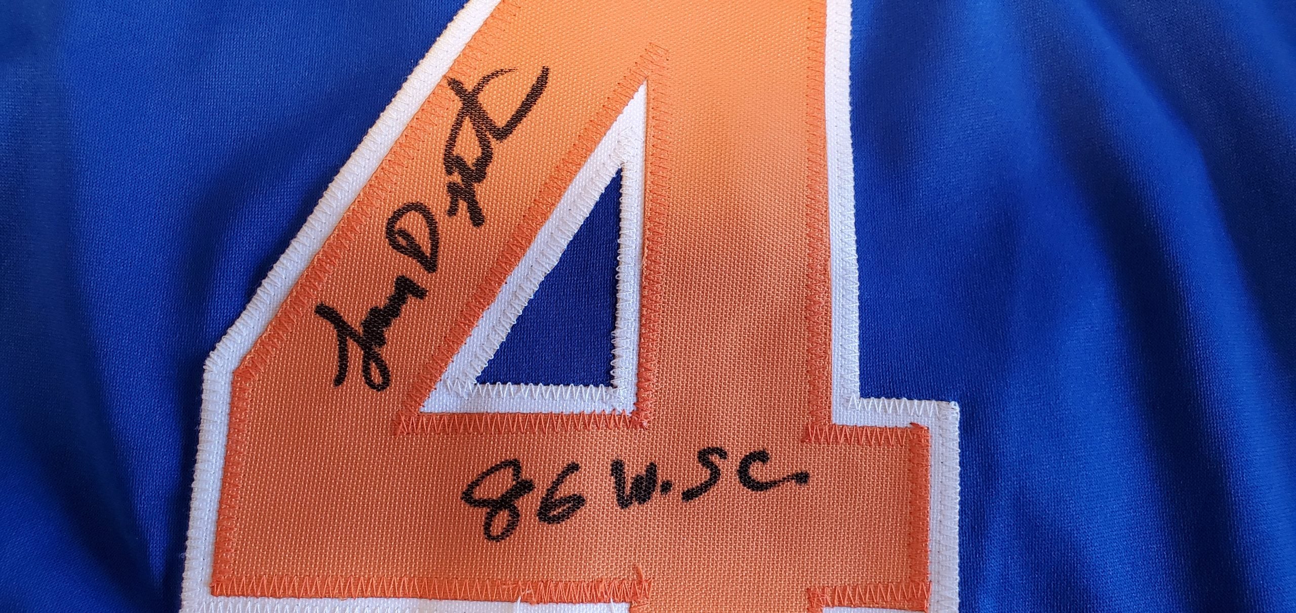 You have the opportunity to own a Lenny Dykstra Autographed and Inscribed Custom New York Blue Jersey inscribed “86 WSC”.