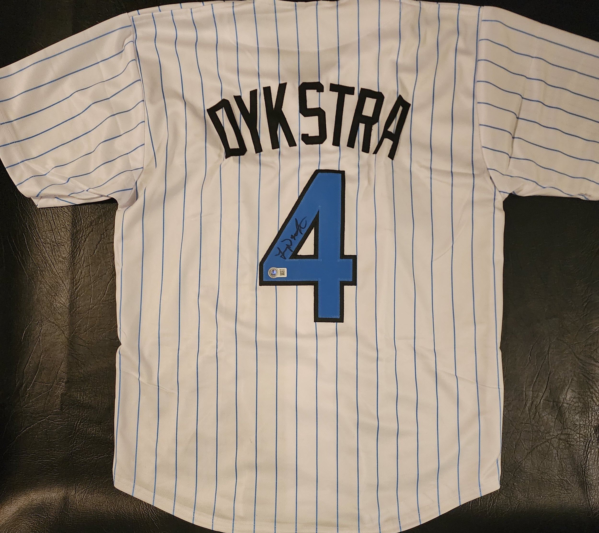 Lenny Dykstra Autographed Custom Blue Fathers Day New York Jersey Beckett Witnessed COA