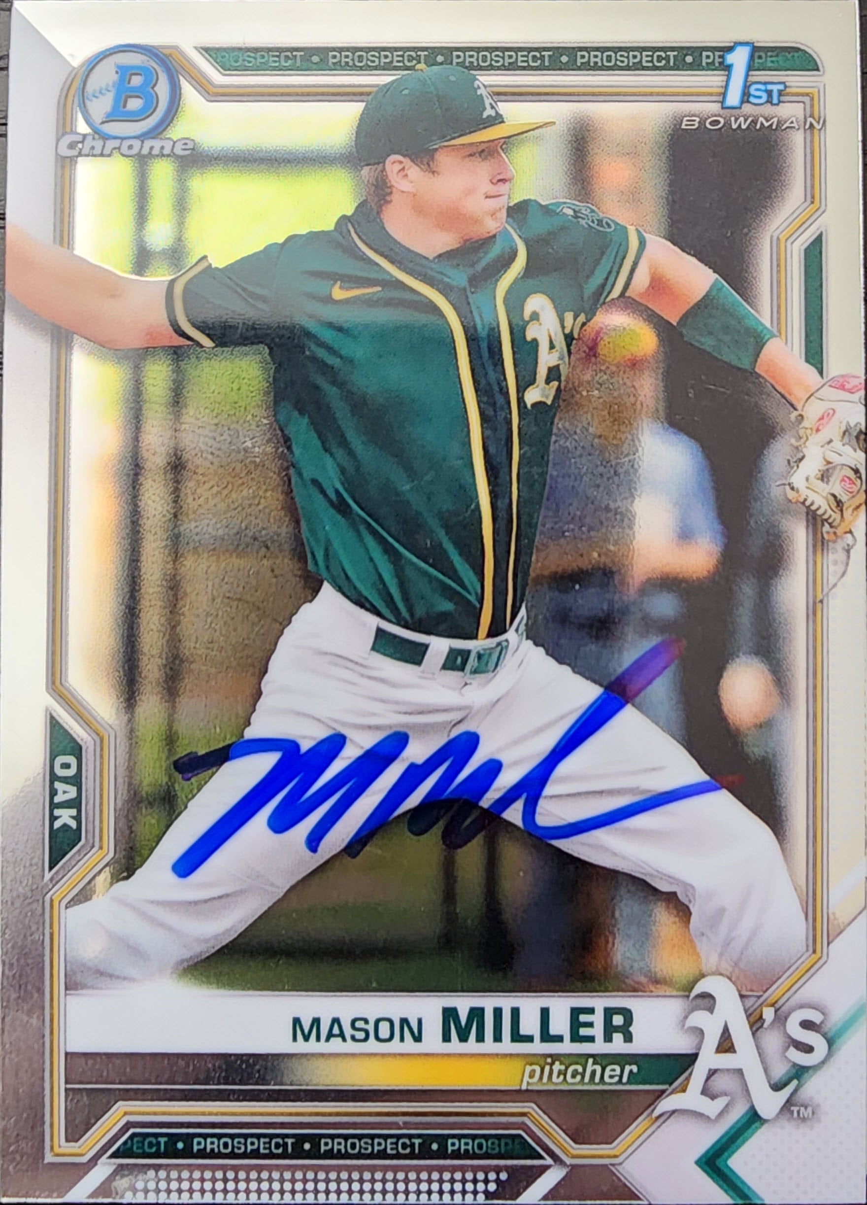You are purchasing a Mason Miller Autographed 2021 Bowman Draft Chrome BD85 Rookie Card with Beckett Certificate of Authentication.