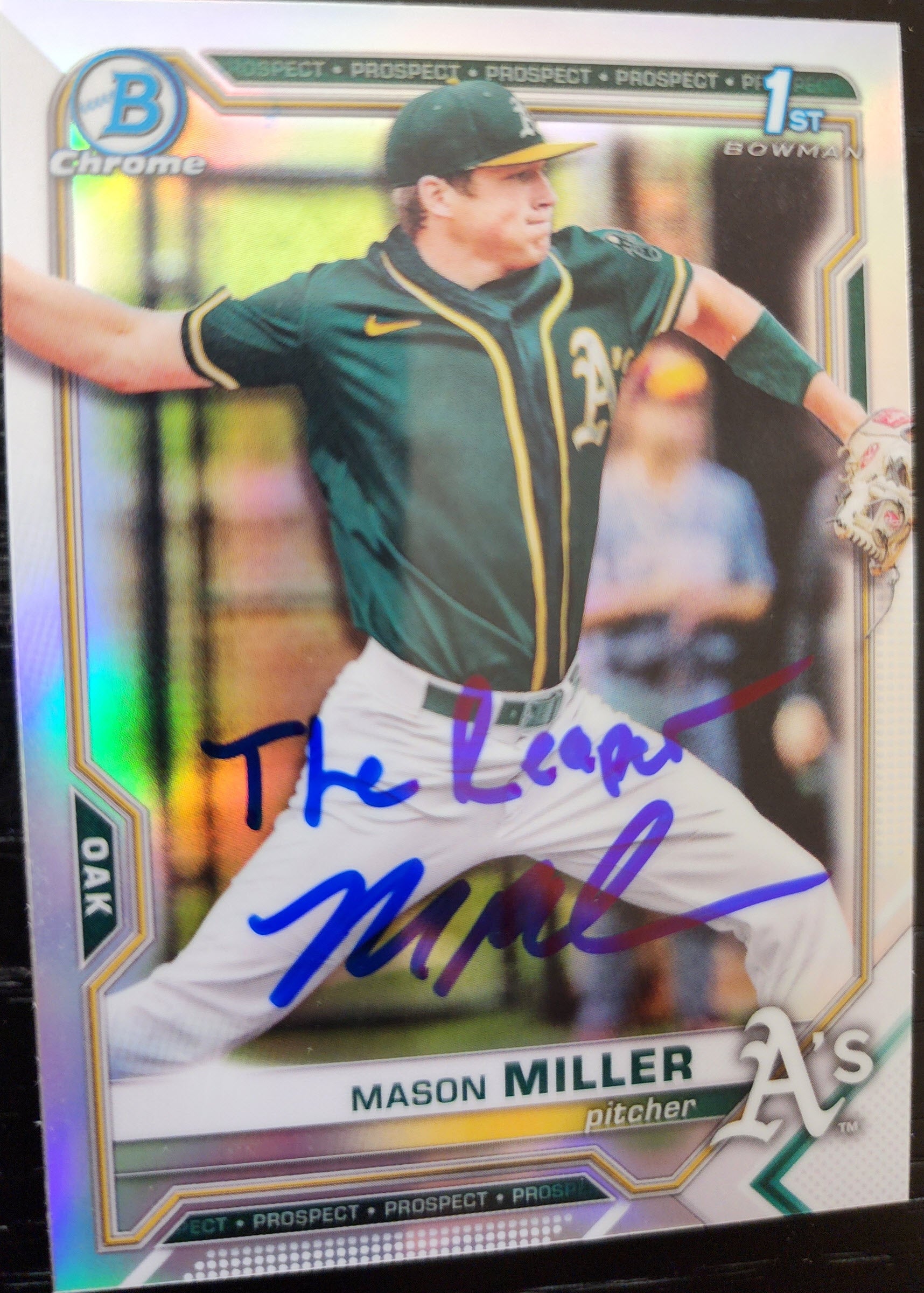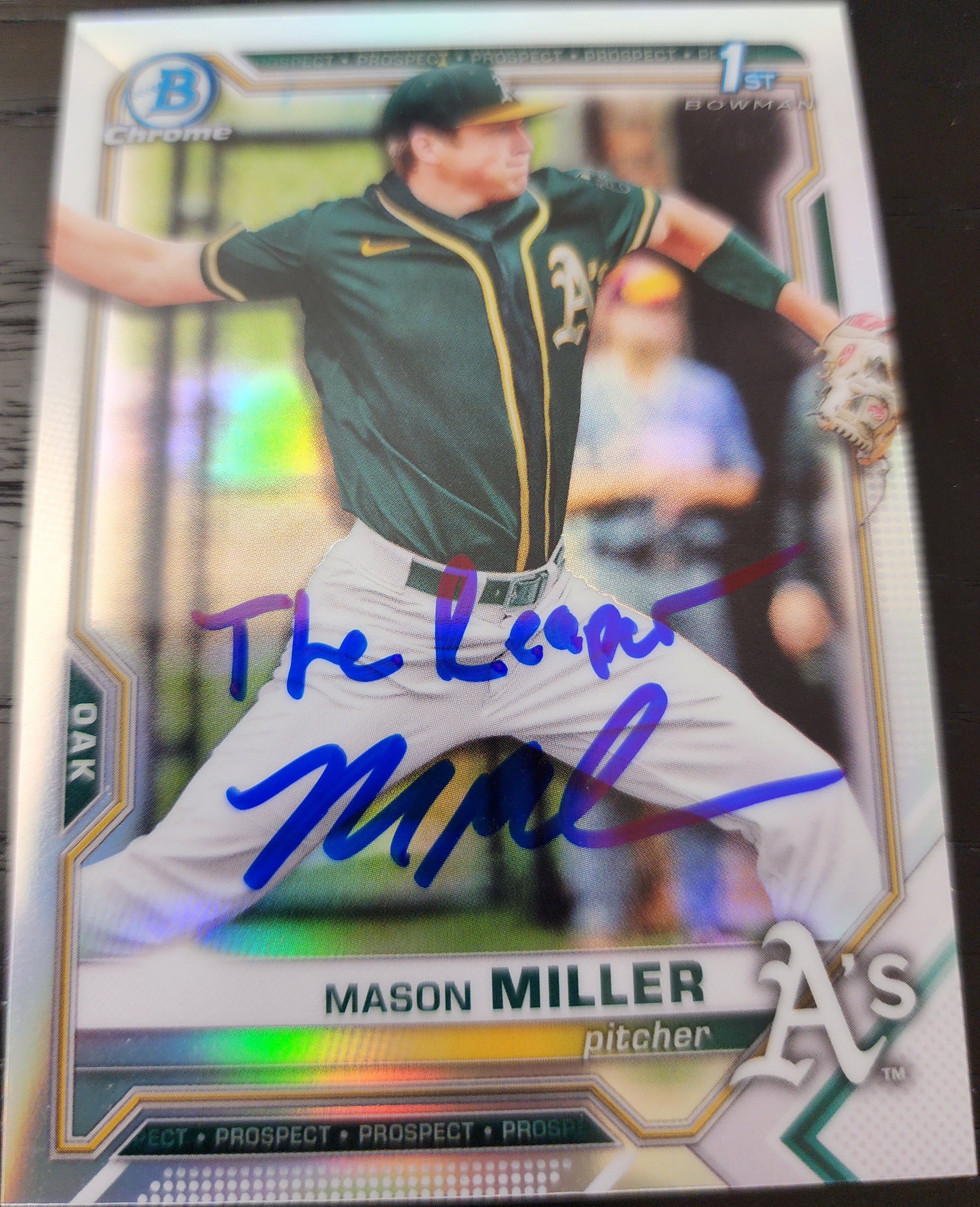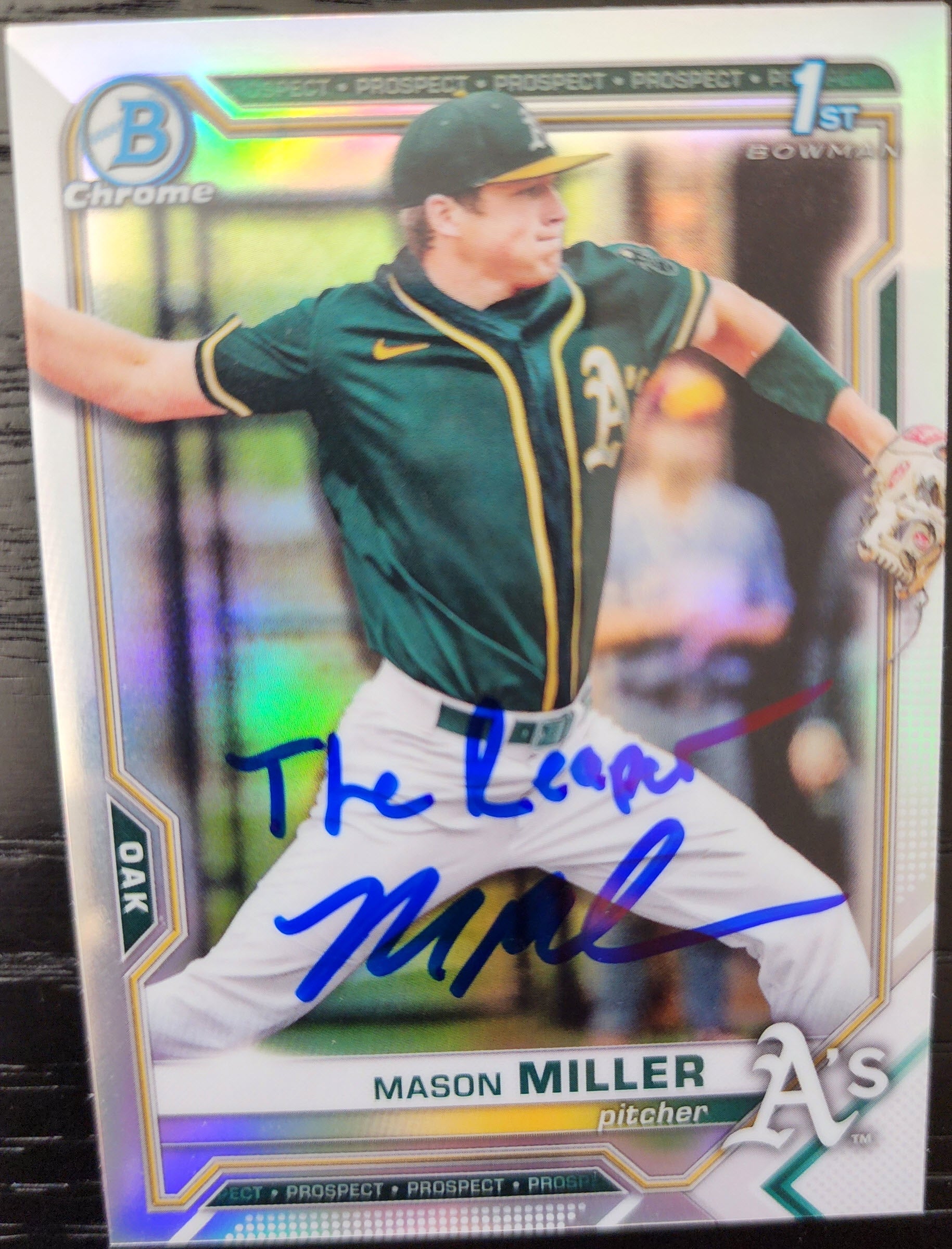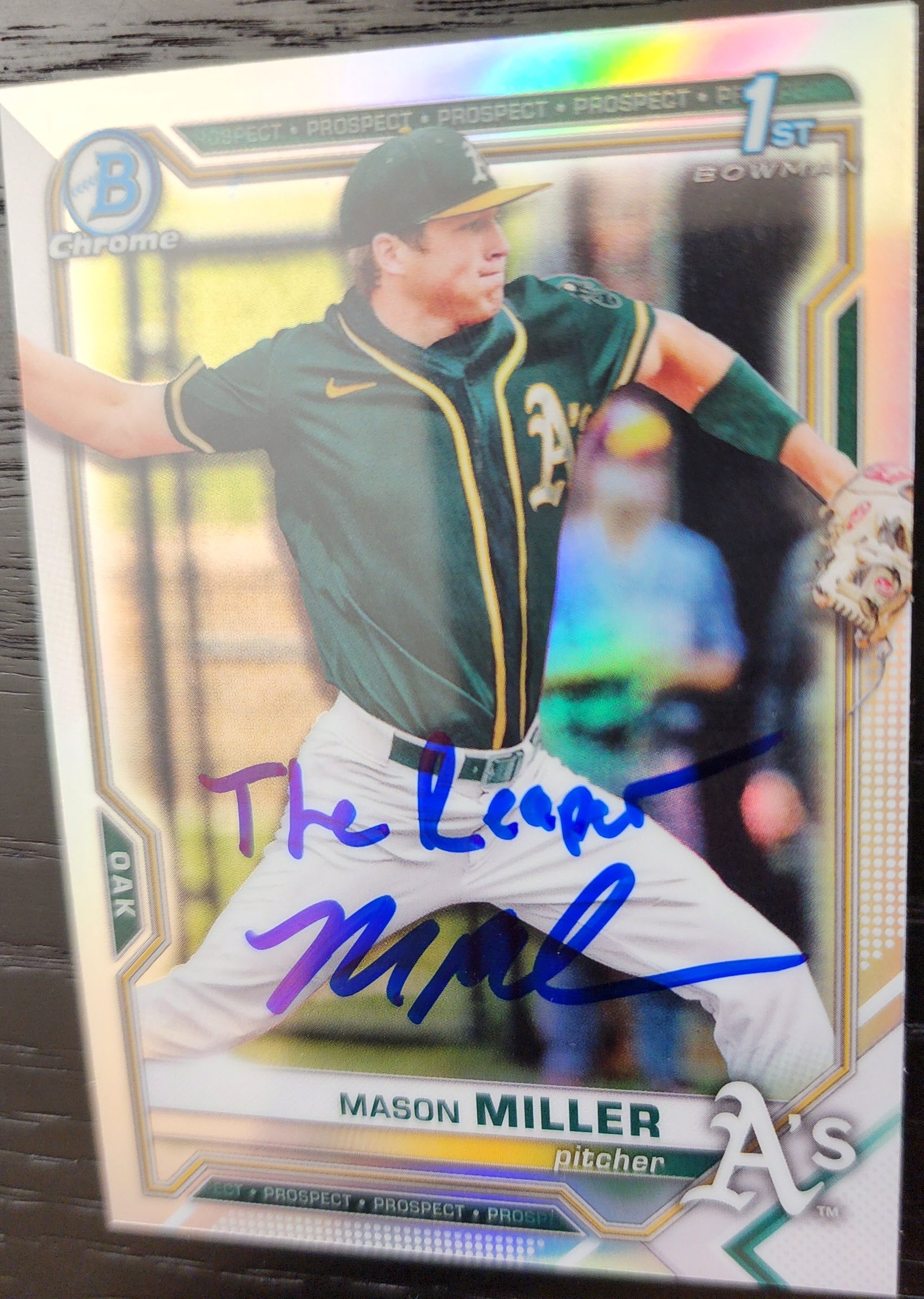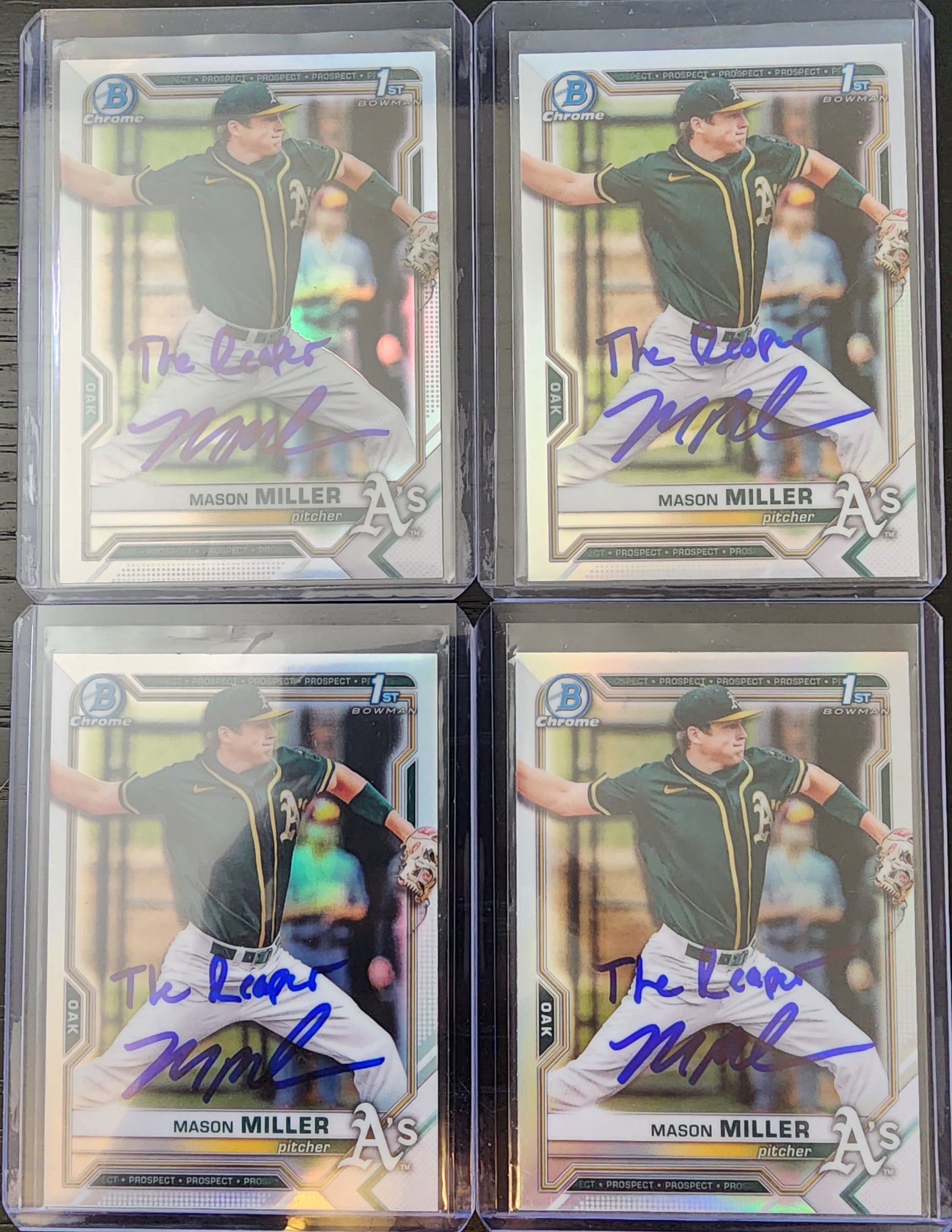 Mason Miller Autographed 2021 Bowman Draft Chrome Refractor BDC85 Inscribed The Reaper with Beckett Certificate of Authentication