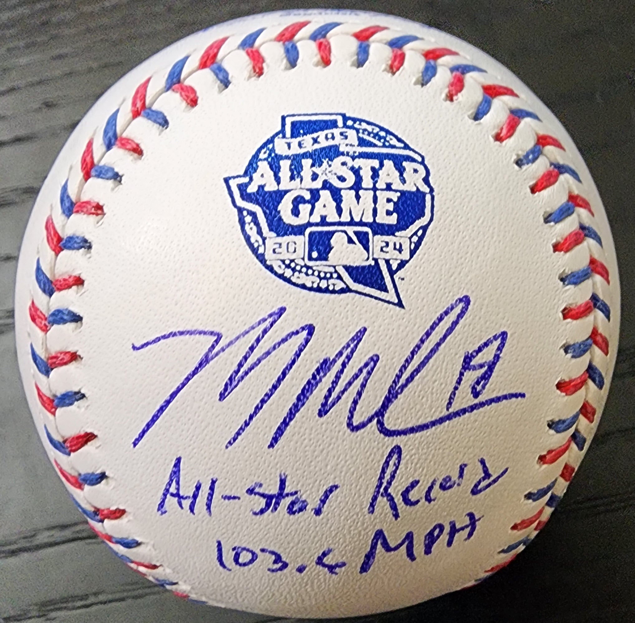 Mason Miller Autographed 2024 All Star Baseball Inscribed All Star Record 103.6 MPH with Beckett Certificate of Authentication