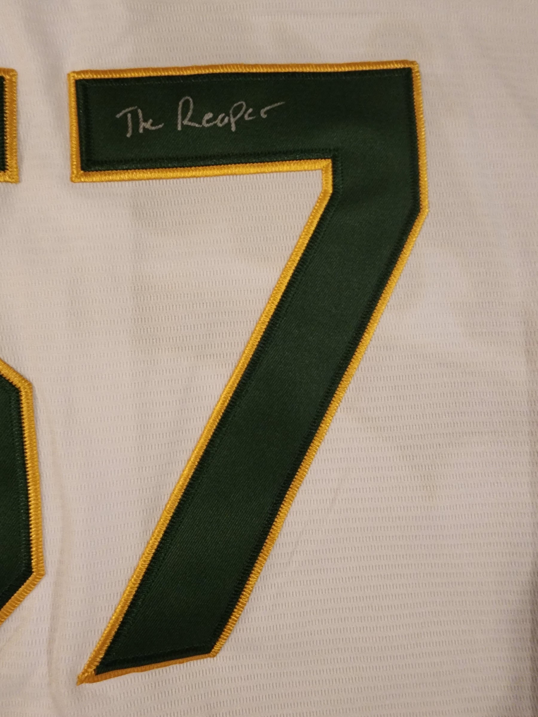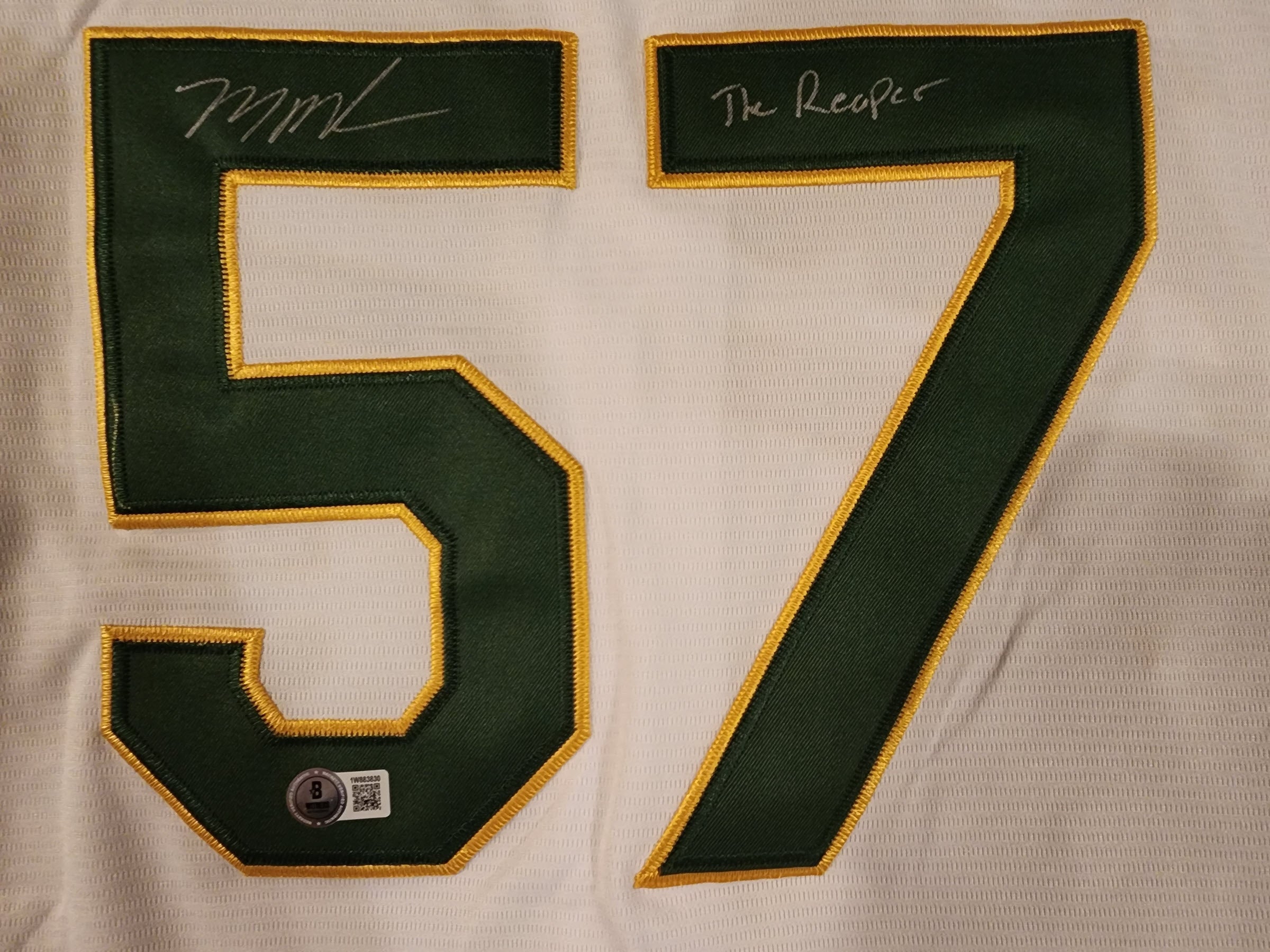 Mason Miller Autographed Oakland As Jersey Inscribed The Reaper with Beckett Certificate of Authentication.