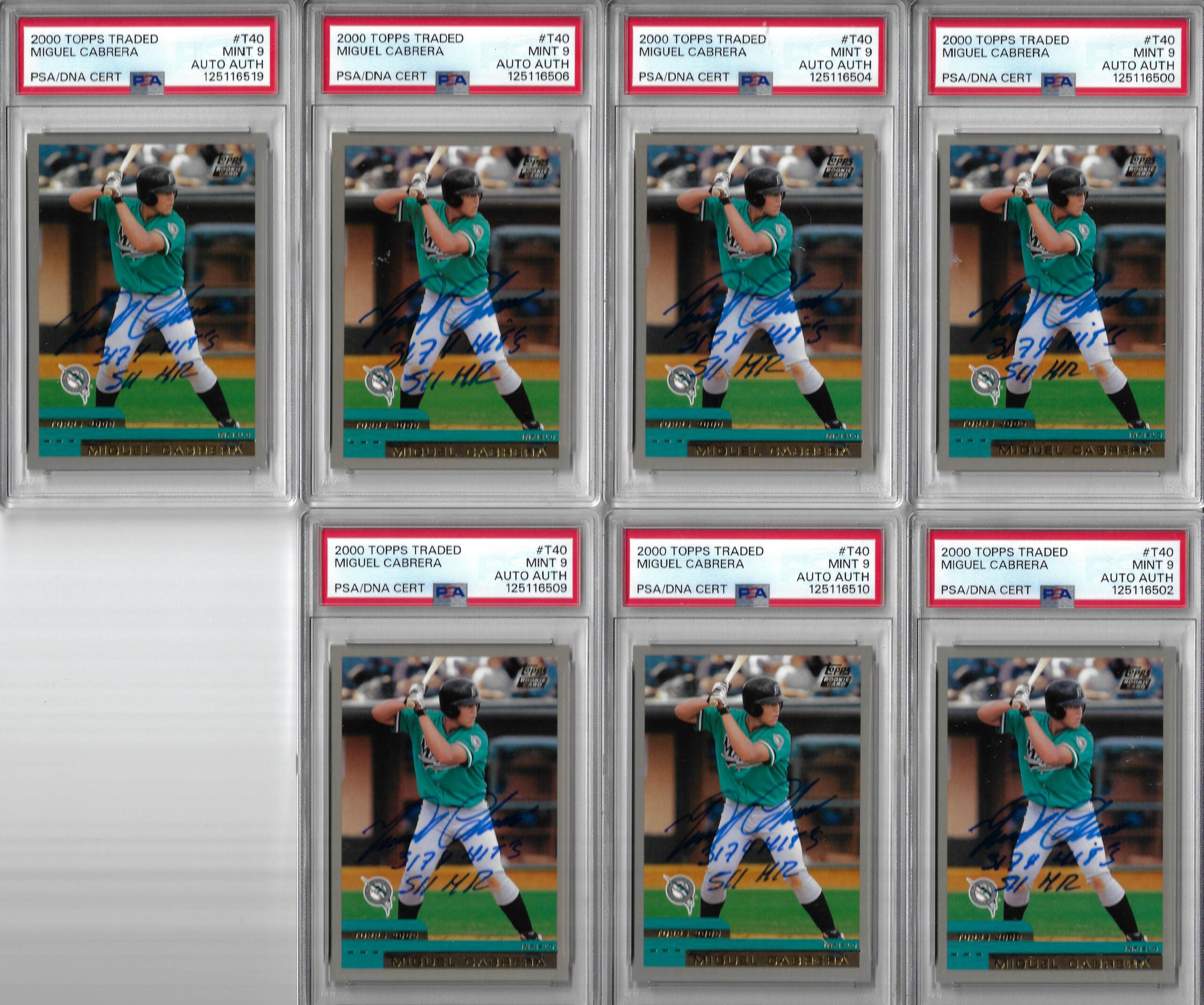 We’ve done nearly a dozen Miggy signings over the years. These rookie cards were signed in 2025 and slabbed by PSA at The National in Chicago.
