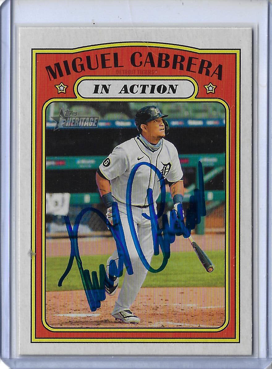 Miguel Cabrera Autographed 2021 Topps Heritage Miguel Cabrera In Action Card 108