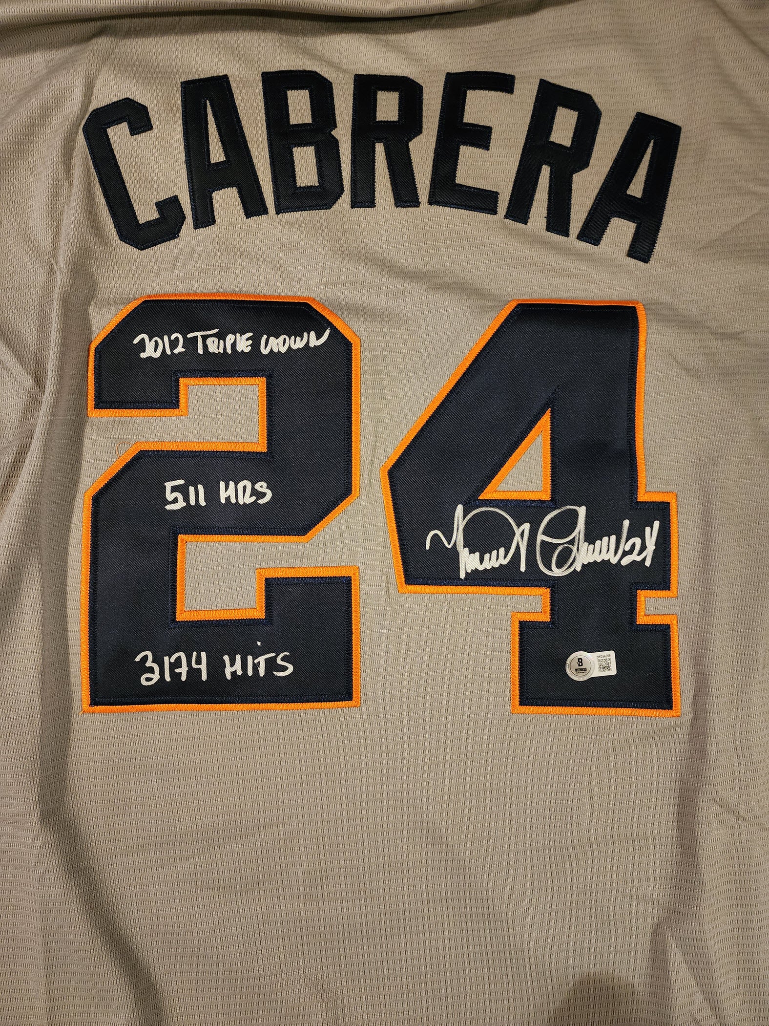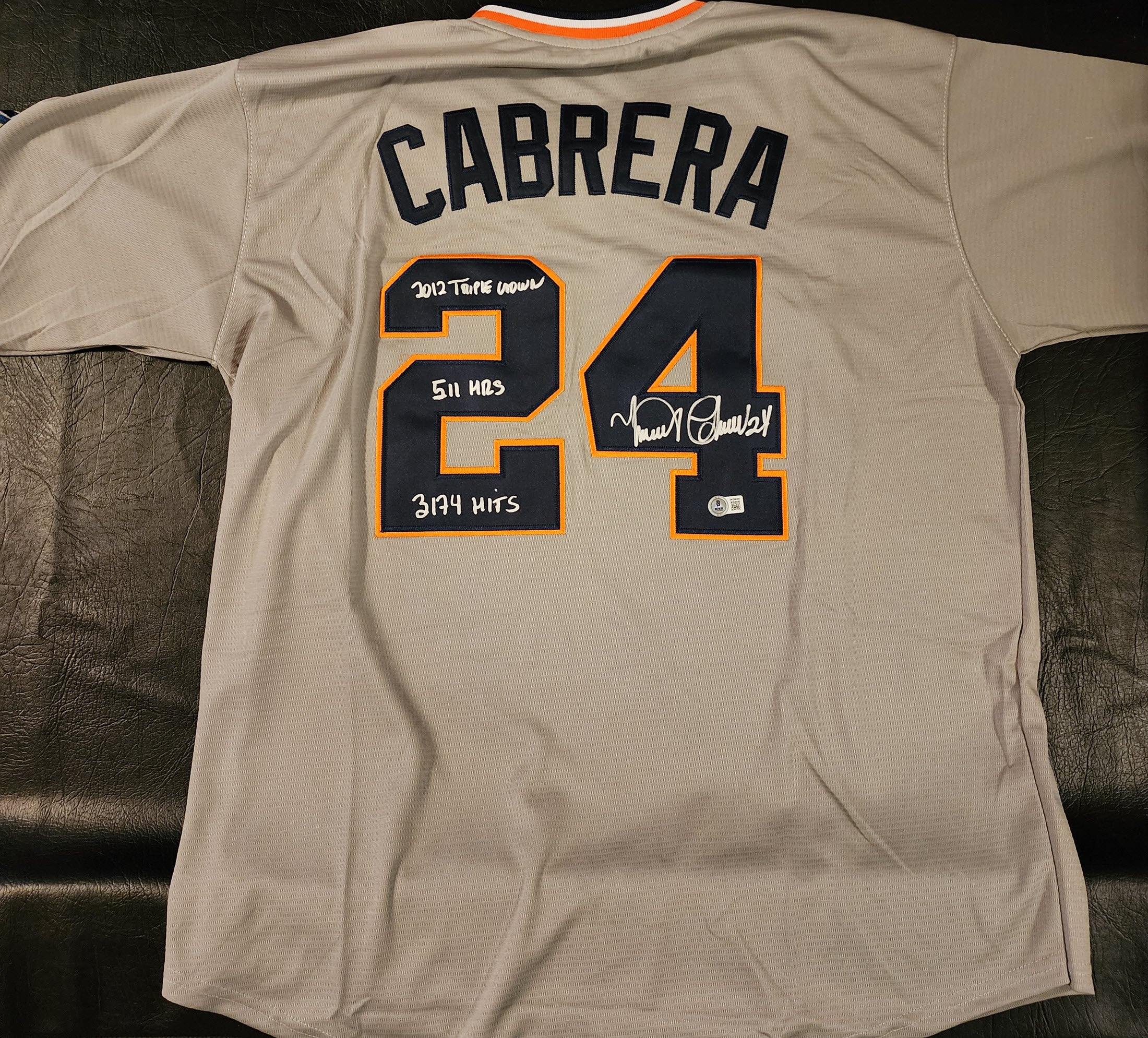 Miguel Cabrera Autographed Gray Detroit Tigers 1970s Turn Back The Clock Inscribed Jersey with Beckett Witnessed Certificate of Authenticity