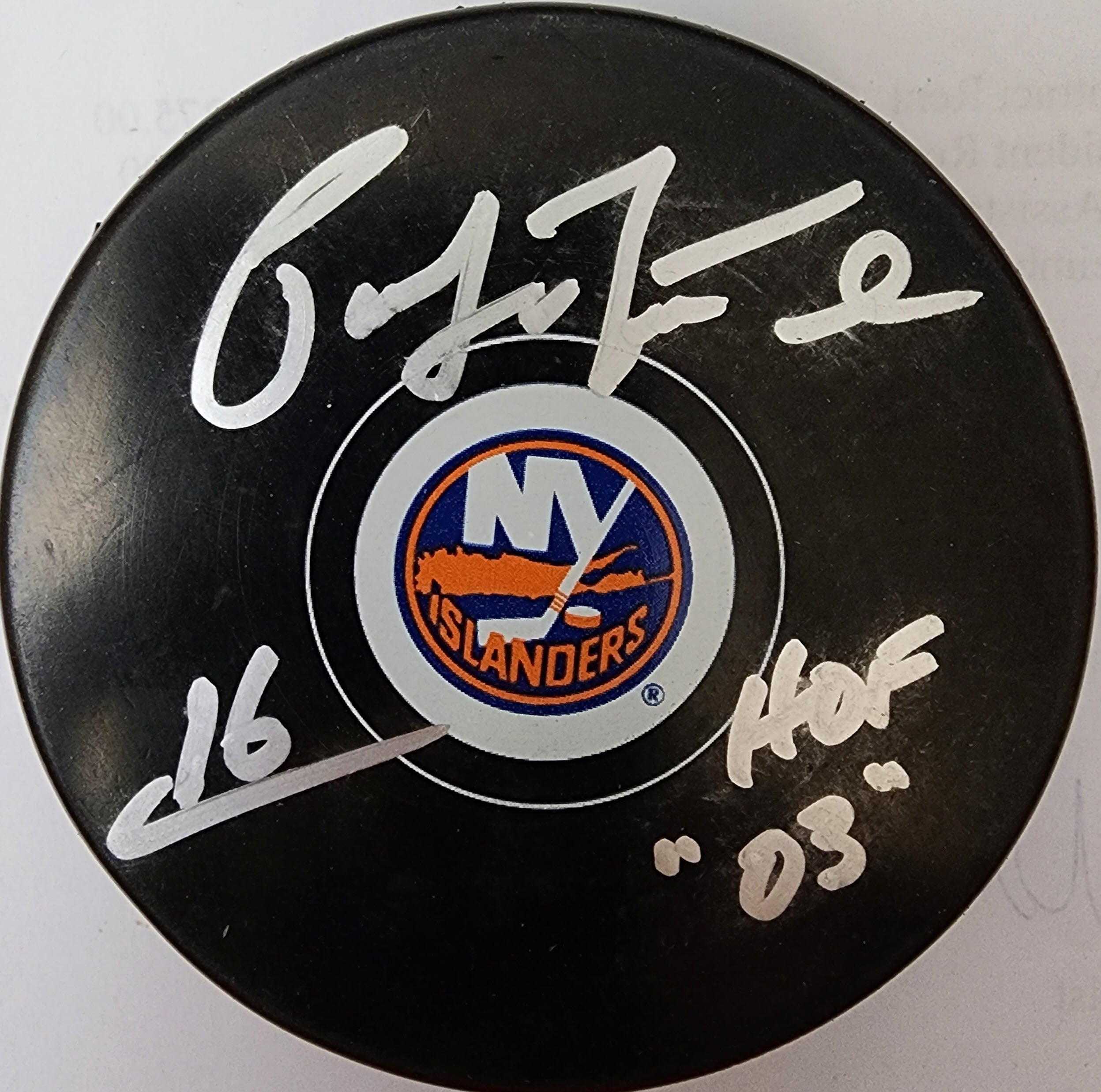 You are purchasing this Pat Lafontaine Autographed New York Islanders Puck with HOF 2003 Inscription JSA COA.