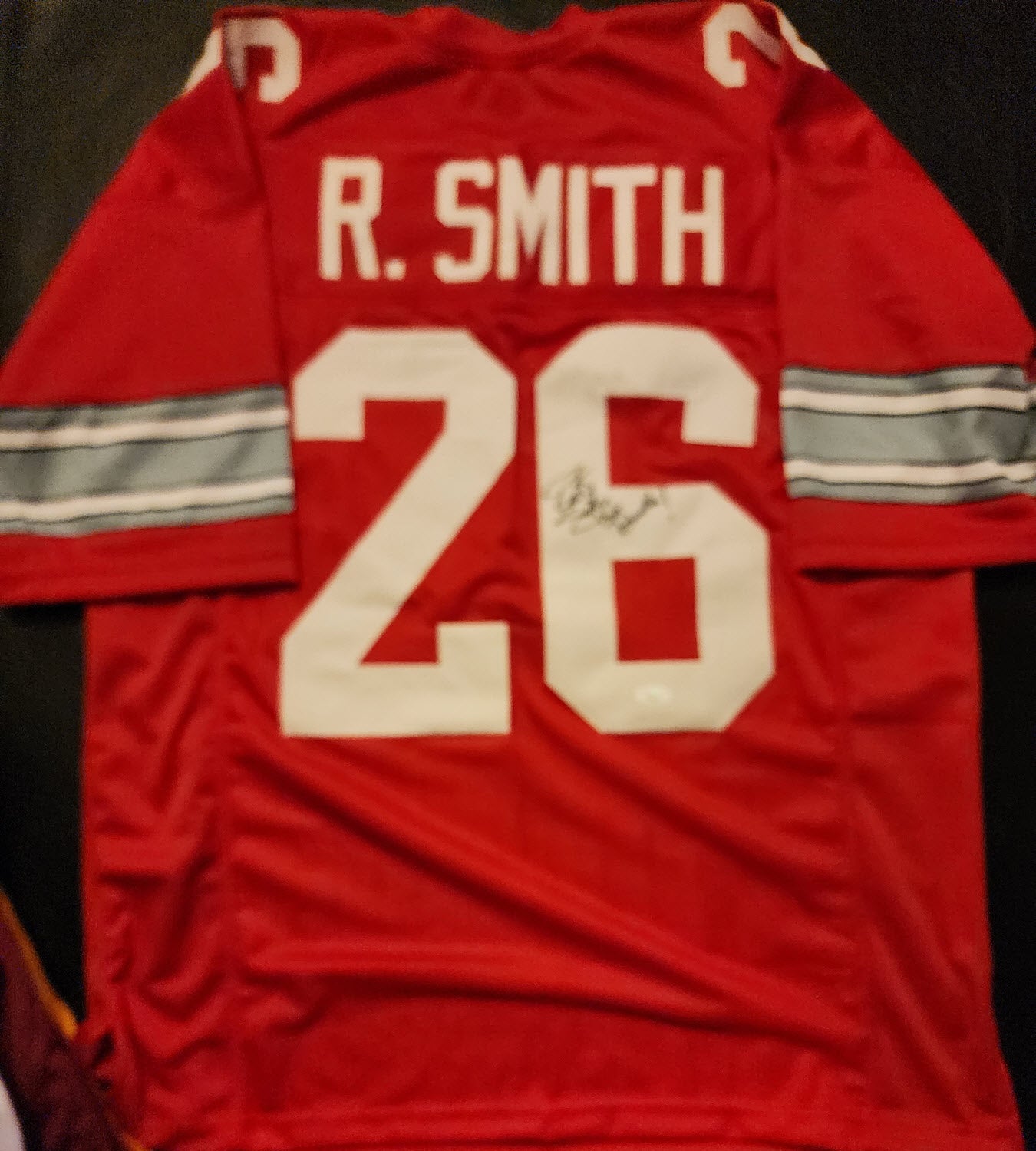 You are purchasing a Robert Smith Autographed Custom Red Ohio State Go Bucks Jersey JSA Certificate of Authenticity.