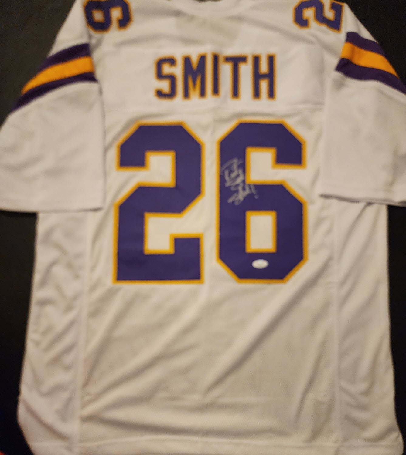 You are purchasing a Robert Smith Autographed Custom White Vikings SKOL Jersey JSA Certificate of Authenticity.