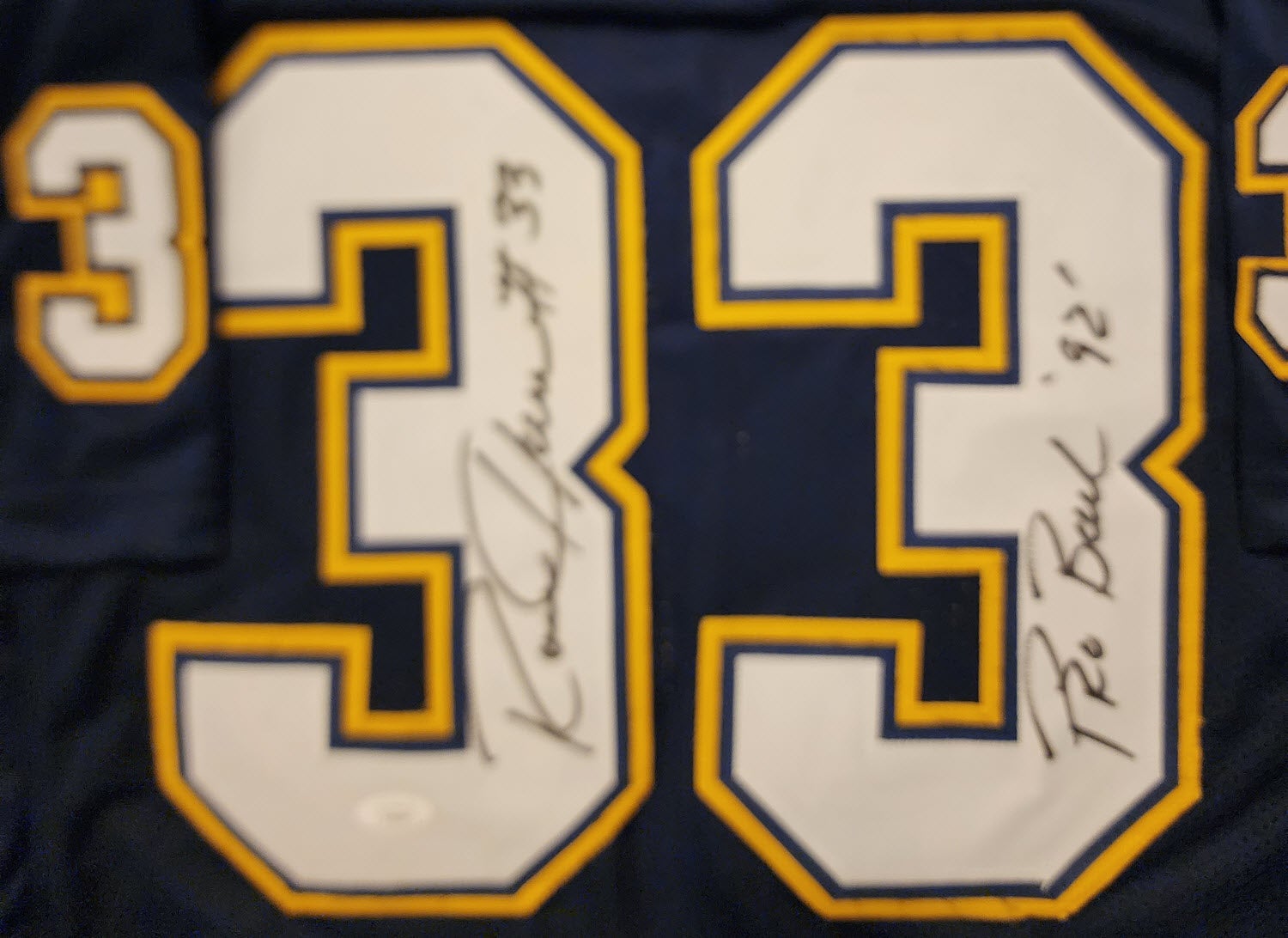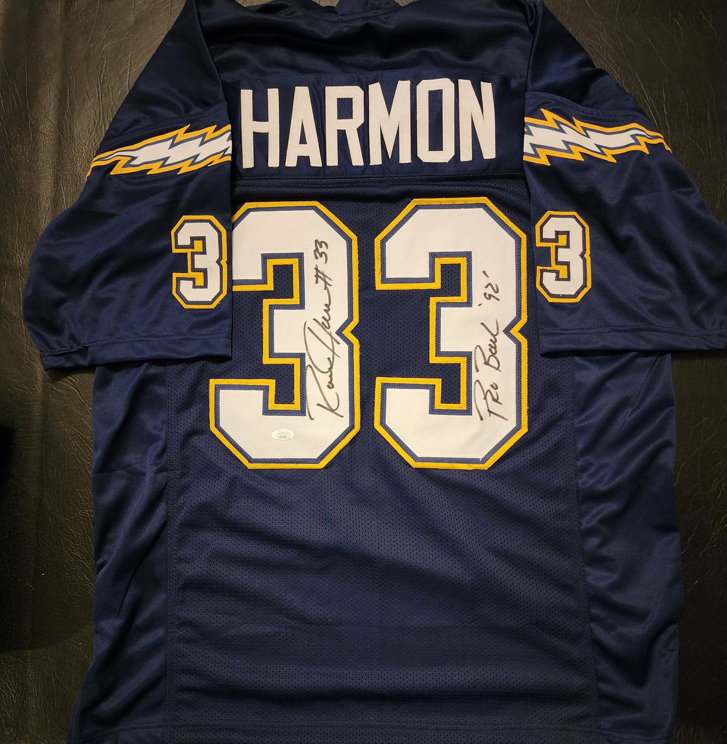 Ronnie Harmon Autographed Custom Chargers 92 Pro Bowl Jersey JSA Certificate of Authenticity
