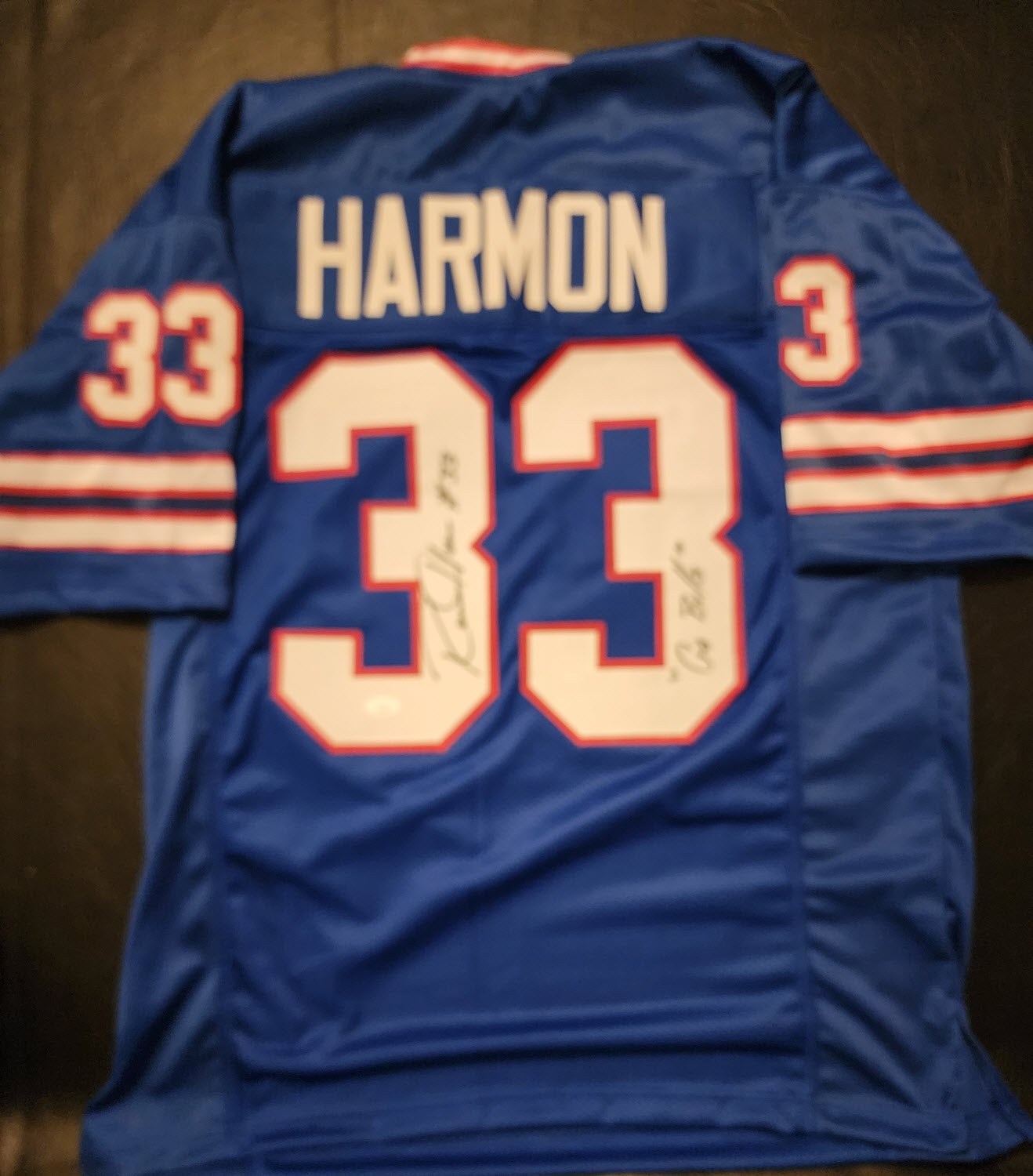 Ronnie Harmon Autographed Custom Go Bills Jersey JSA Certificate of Authenticity
