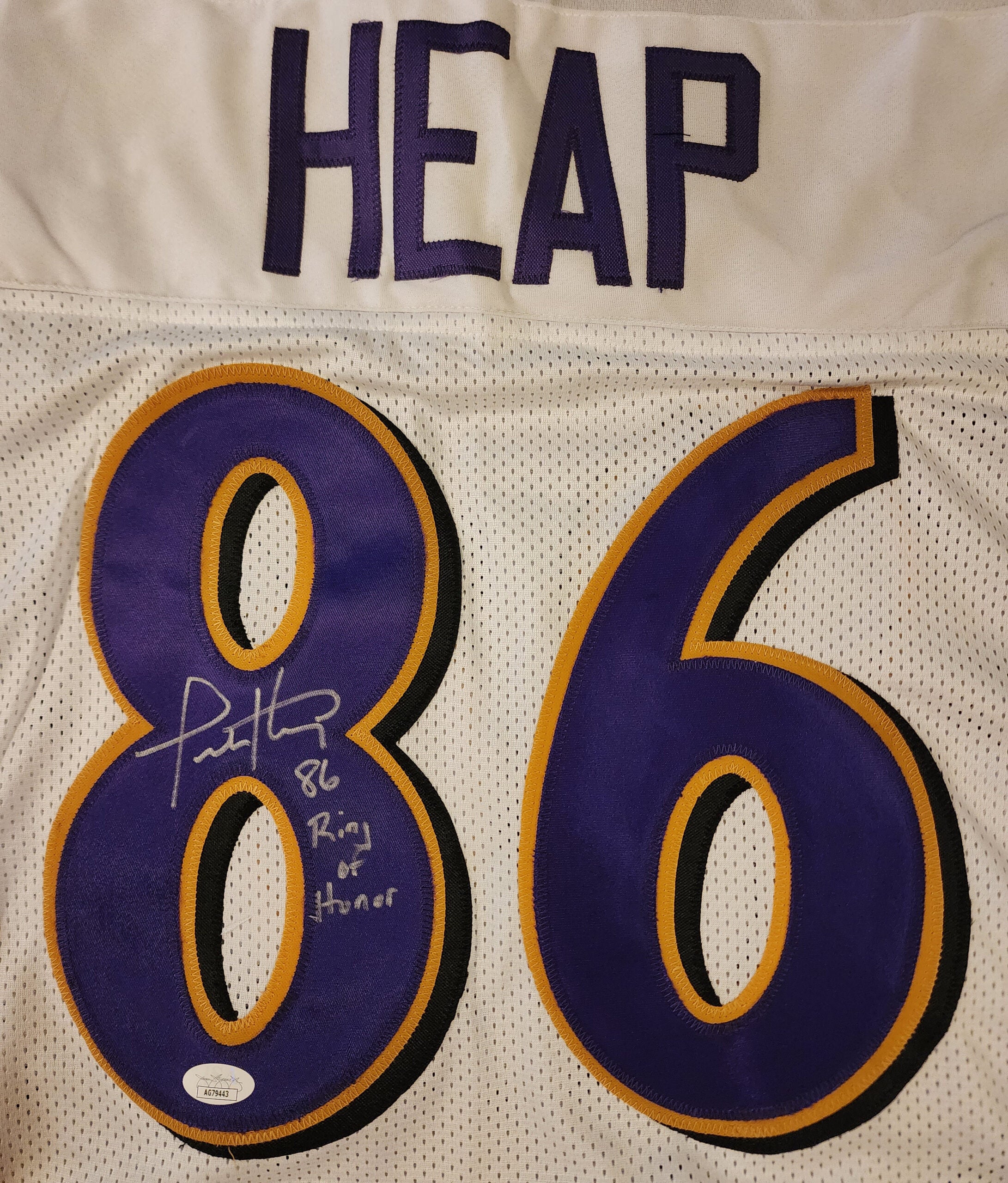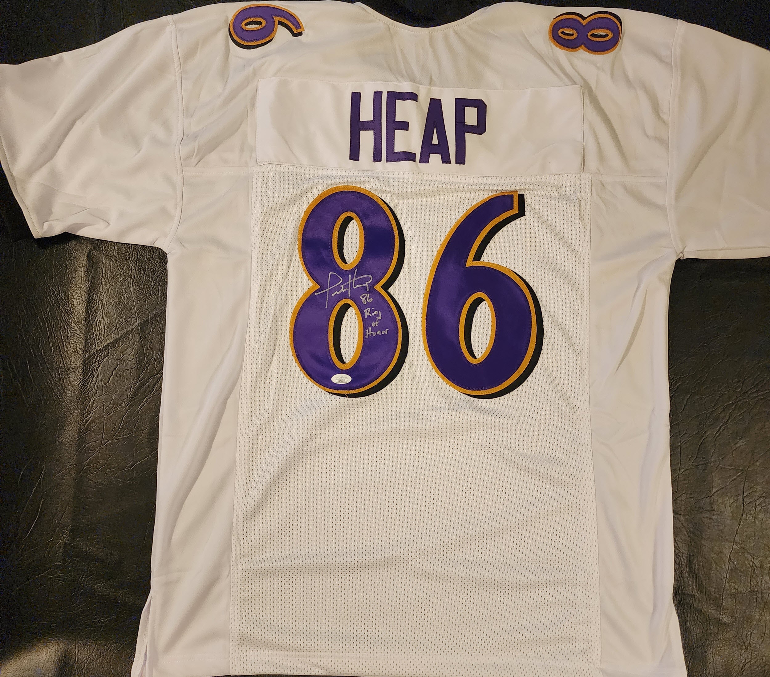 Todd Heap Autographed Custom Baltimore White Jersey inscribed Ring of Honor JSA COA