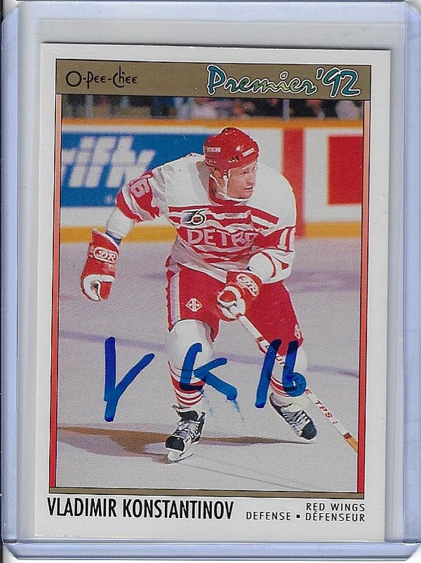 You are purchasing a Vladimir Konstantinov 1991 O-Pee-Chee Premier 118 Autographed Card with slight smear