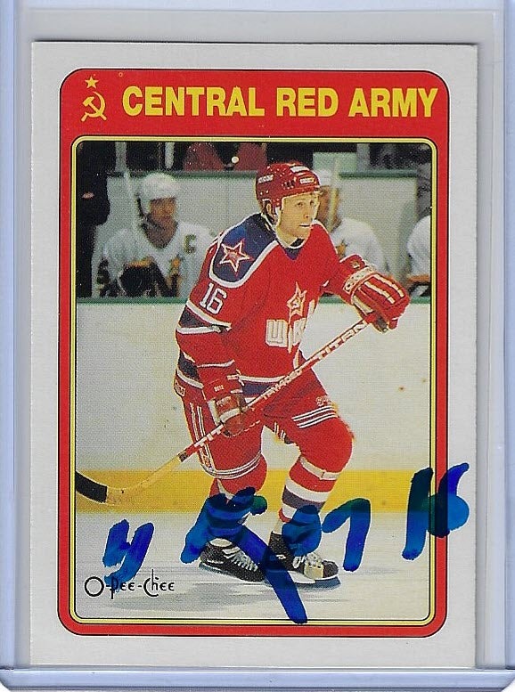You are purchasing a Vladimir Konstantinov 1990 O-Pee-Chee Red Army Inserts 21R Autographed Card