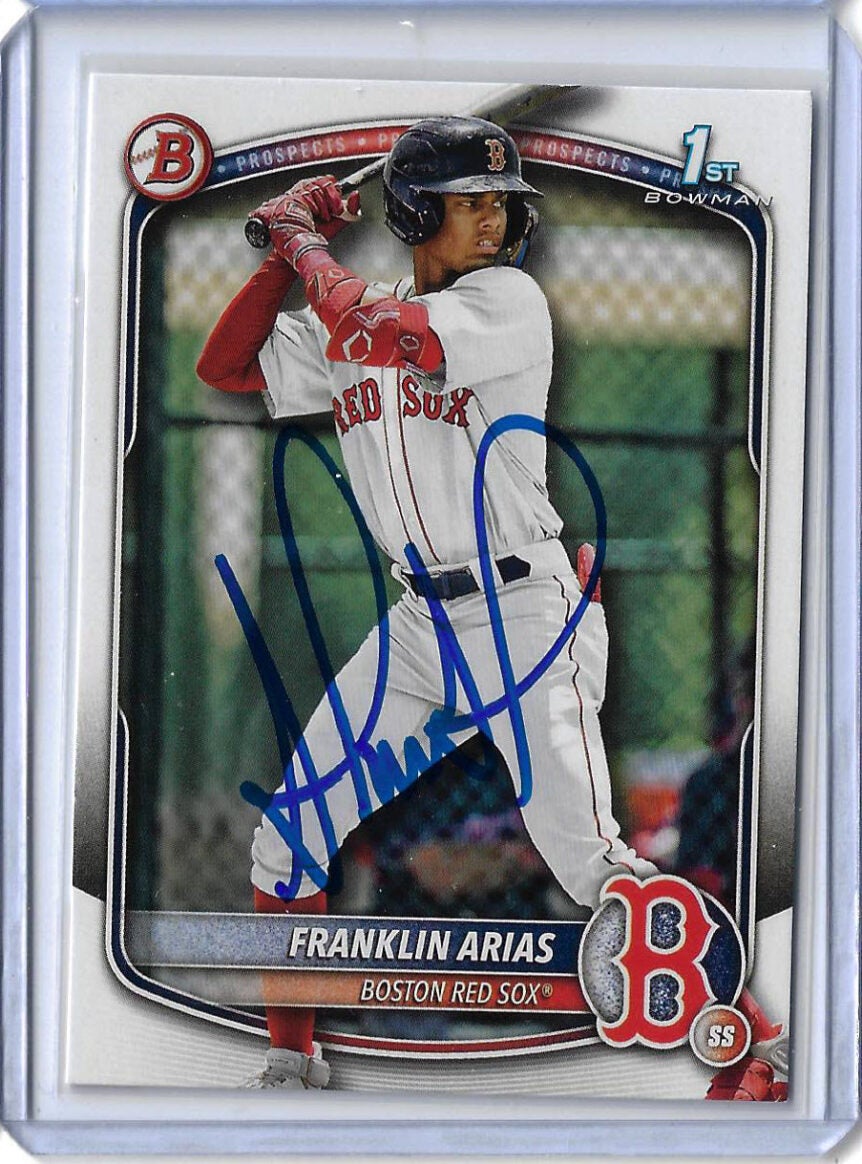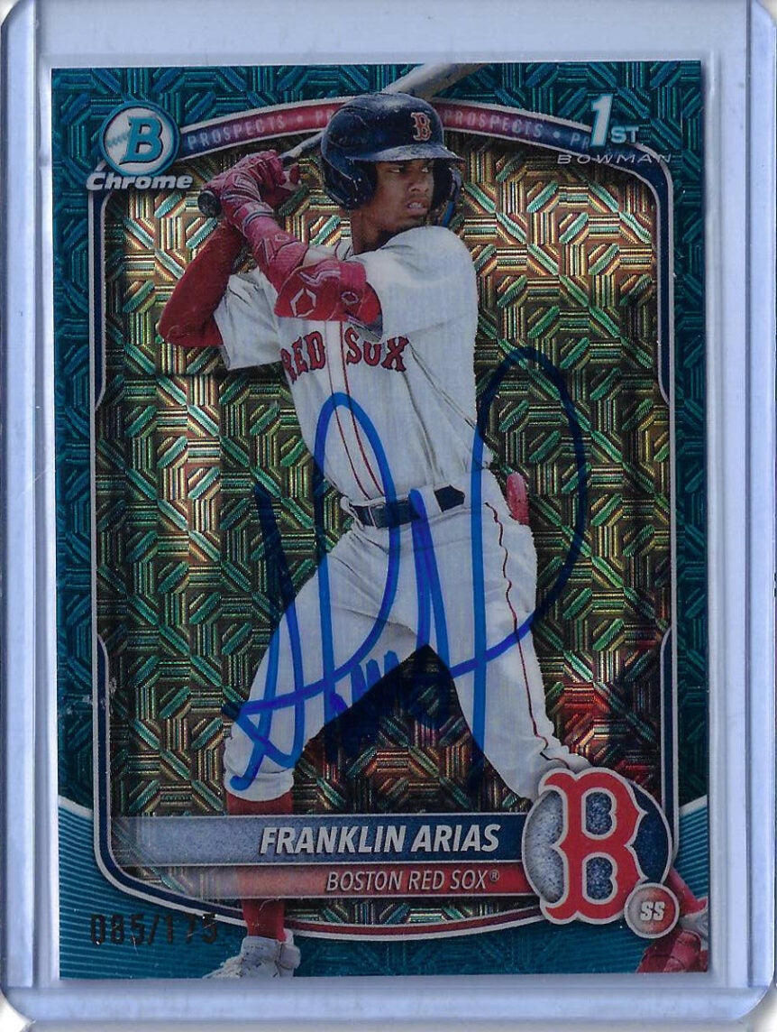 Franklin Arias Autographed 2025 Bowman Chrome 1st Prospect Blue Refractor BCP67 Rookie Card RC #085/175Franklin Arias Autographed 2025 Bowman Chrome 1st Prospect Blue Refractor BCP67 Rookie Card RC #085/175